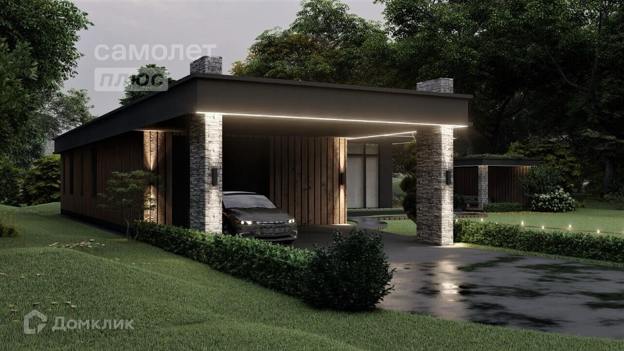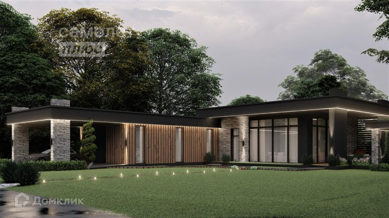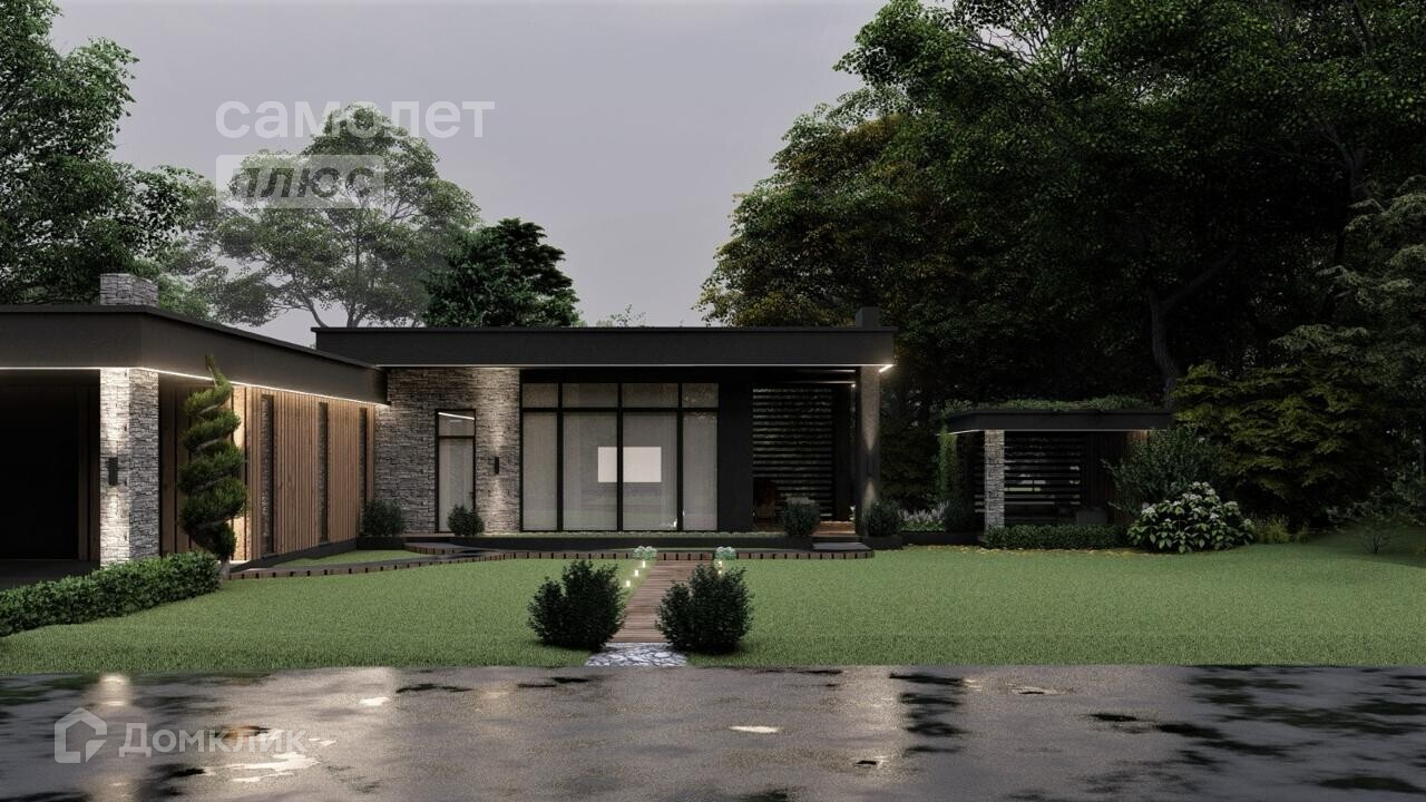 В доме 4 спальни, 2 гардеробные, 3 санузла, кухня-гостиная 57 м2 с панорамным остеклением, высоким потолком и выходом на террасу.