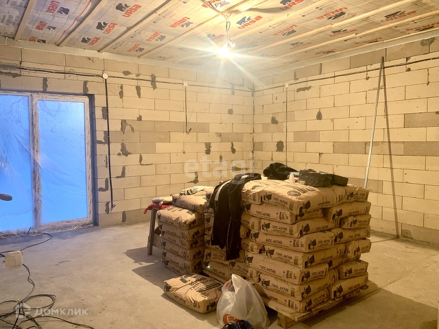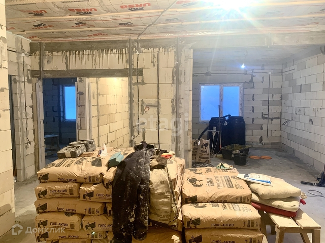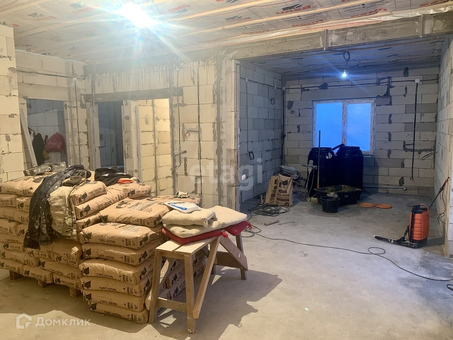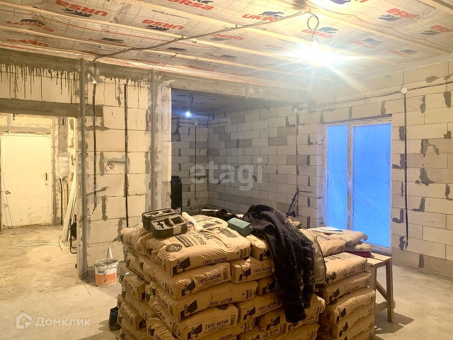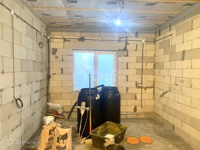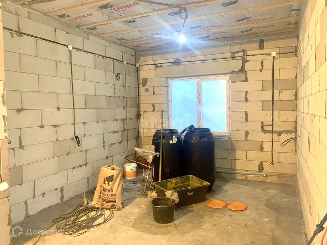 Выполнены работы: залита стяжка пола, стены отштукатурены механизированным способом, поверхность гладкая и можно сразу клеить обои, разводка всех коммуникаций, подшиты полки(сафиты), водосточная система.
