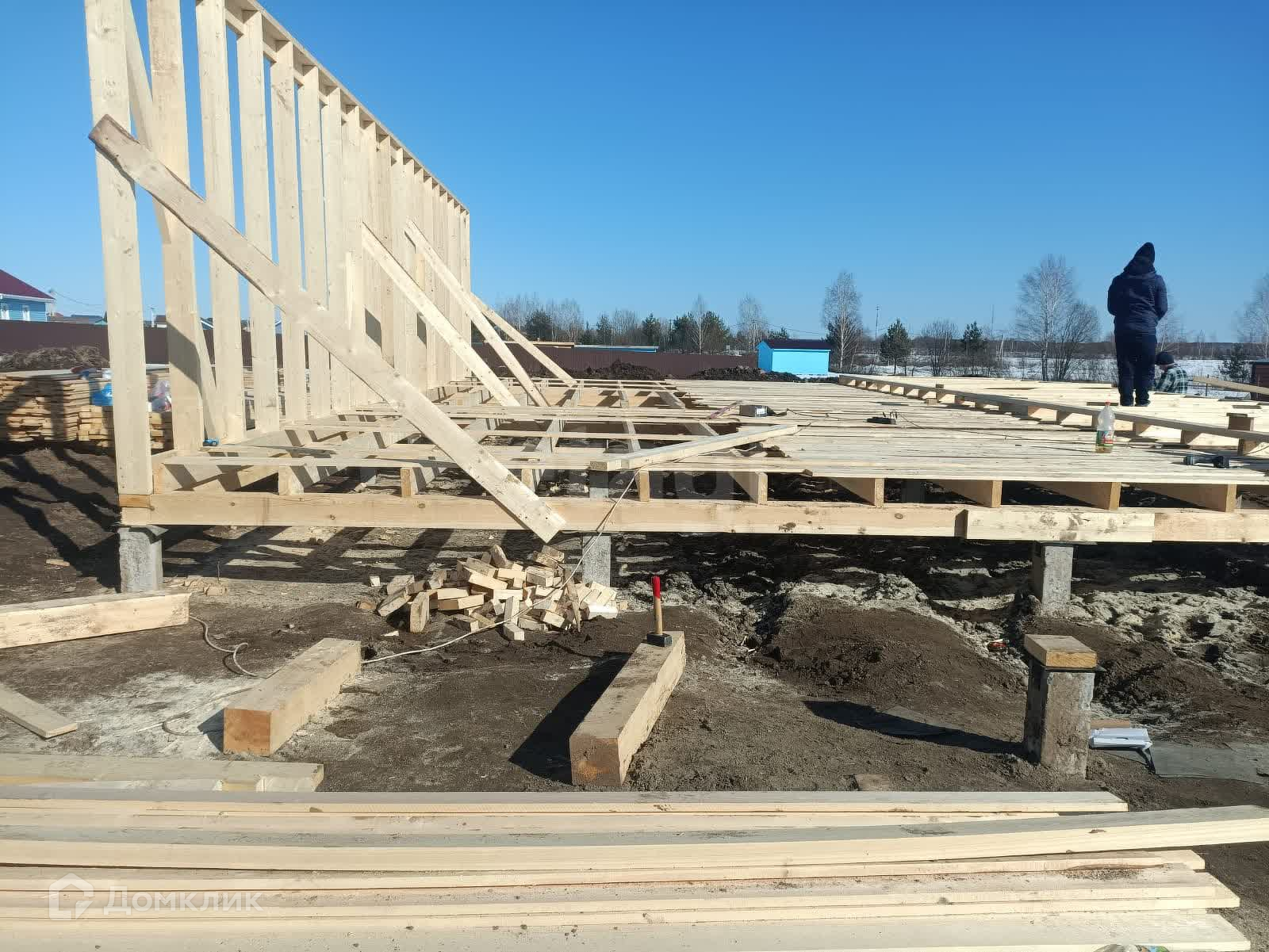 Этот уютный одноэтажный каркасный дом порадует вас своим теплом и комфортом. Фасад оформлен сайдингом, что создает привлекательный и стильный внешний вид. В его основе лежит свайный фундамент, гарантирующий надежность и долговечность.