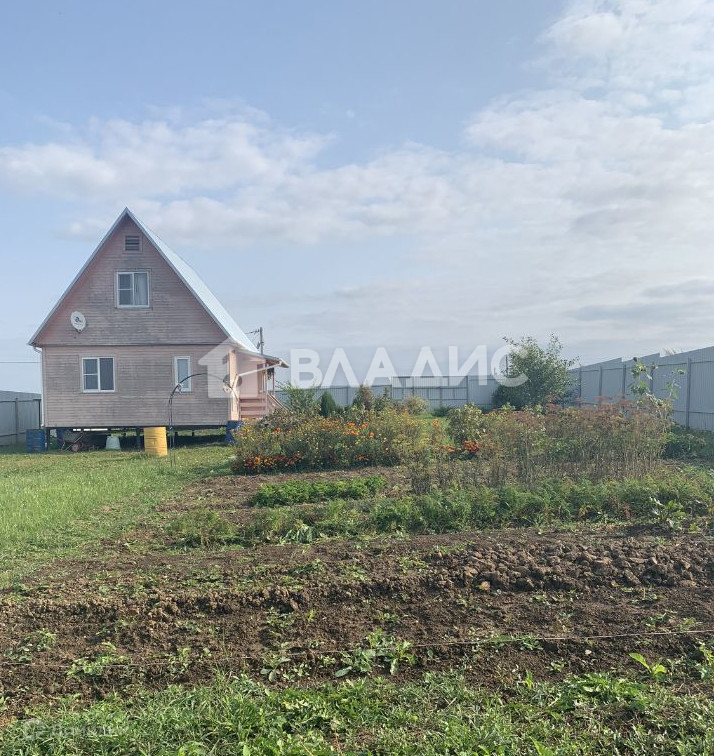 Земля на участке удобрена под огород, высажен свежий газон, цветы, плодовые деревья.