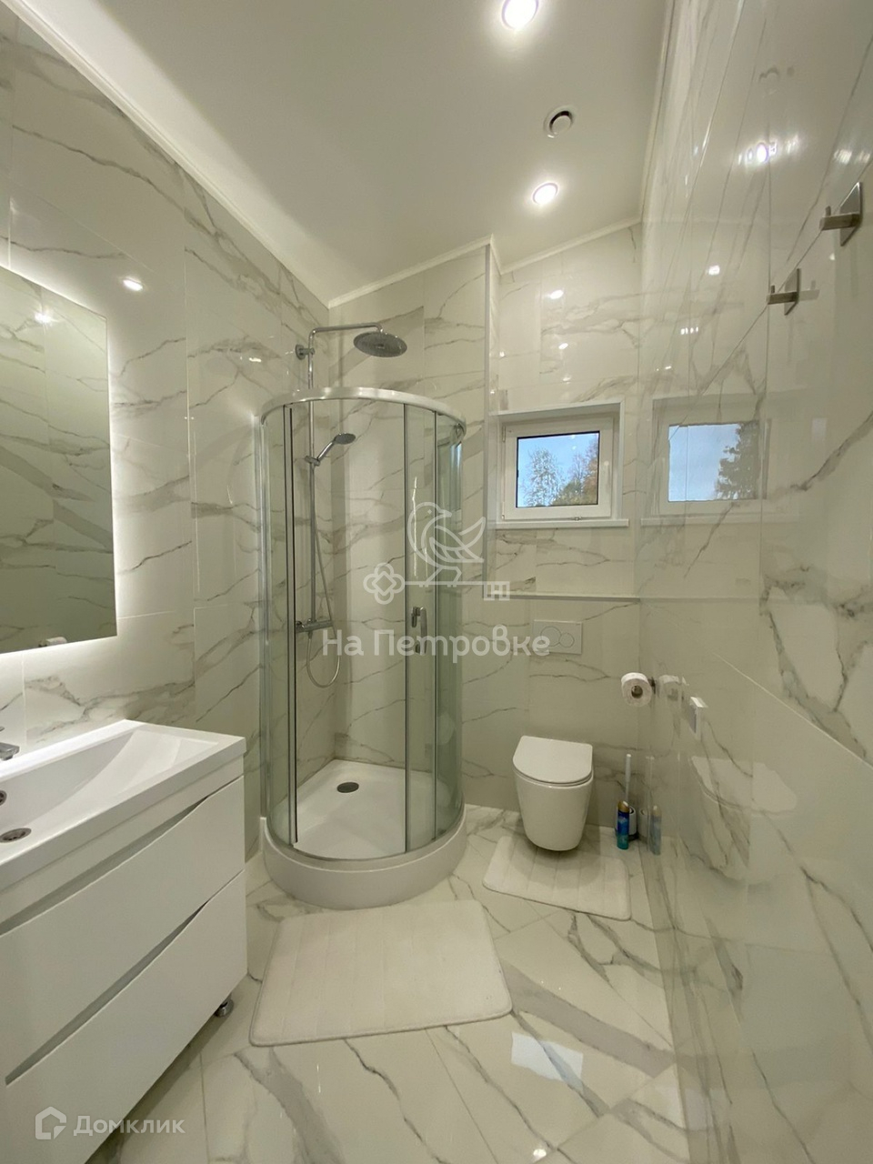 Три спальни по 13 м., Телевизор 65 дюймов, диван Аскона ортопедический двухместный, двуспальная кровать Аскона, два санузла, в одном душевая кабина, во втором ванна.