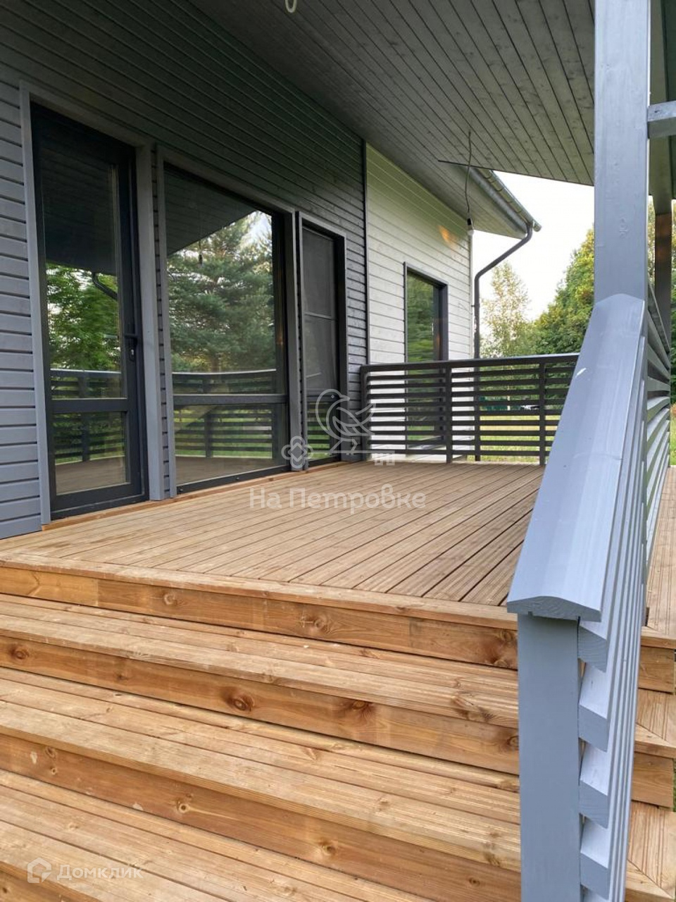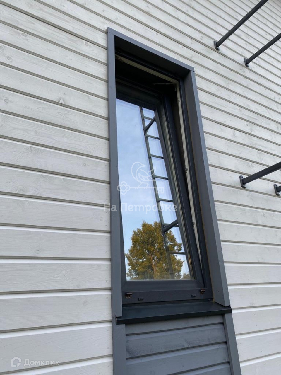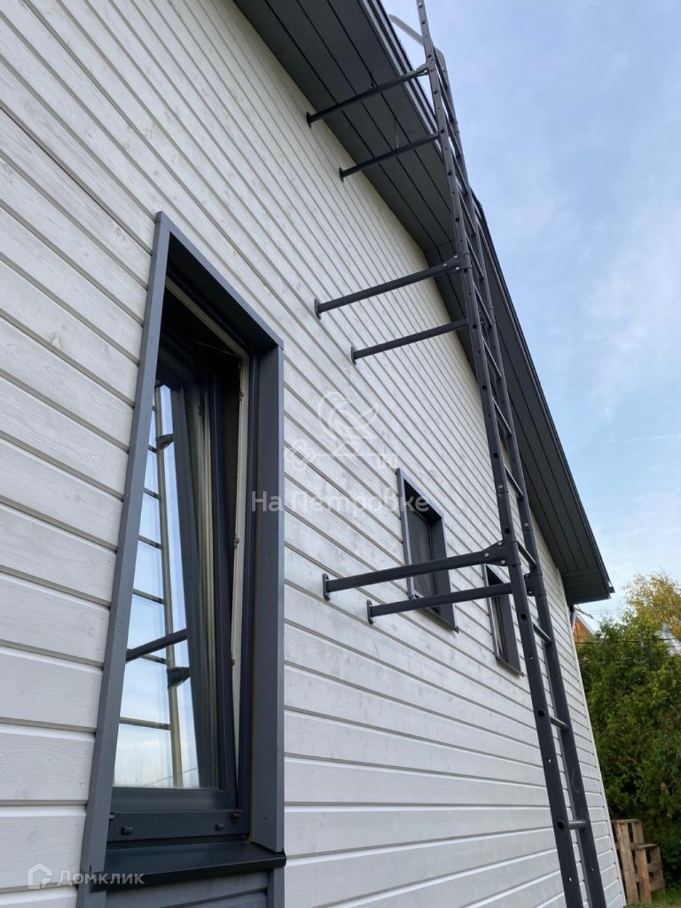 Есть видеонаблюдение с улицы, стиральная машина с сушкой, окна панорамные. Проезд через соседний участок, ворота откатные электрические.