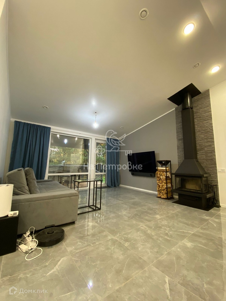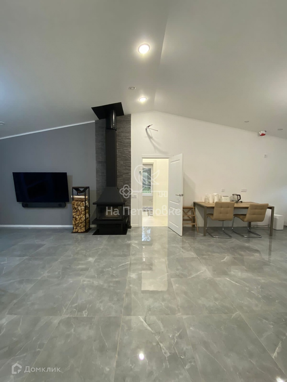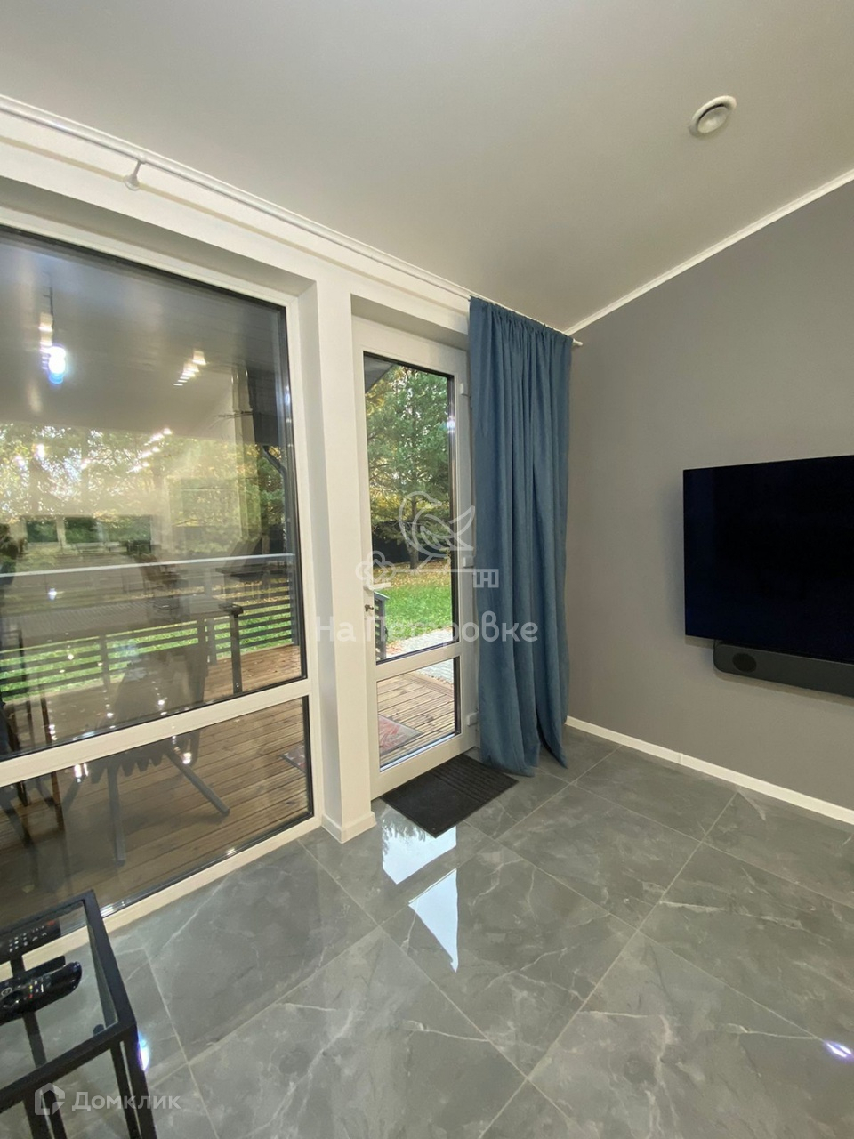Есть видеонаблюдение с улицы, стиральная машина с сушкой, окна панорамные. Проезд через соседний участок, ворота откатные электрические.
