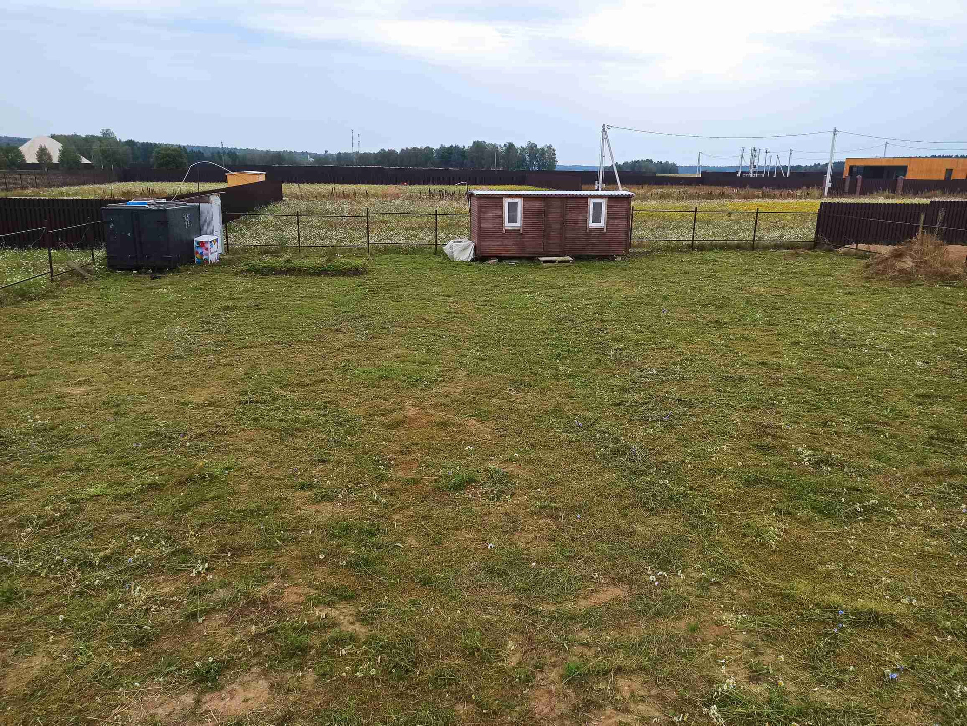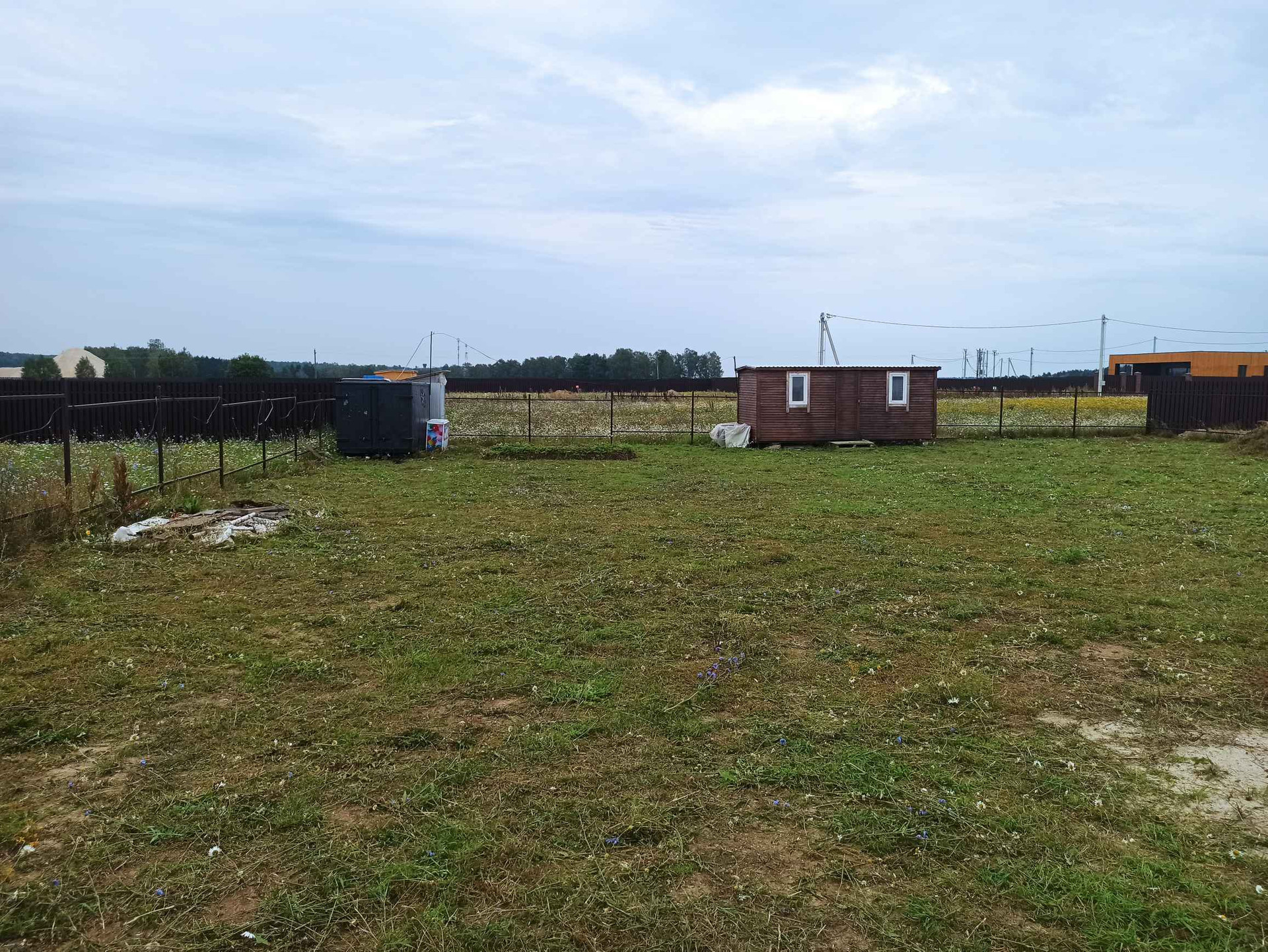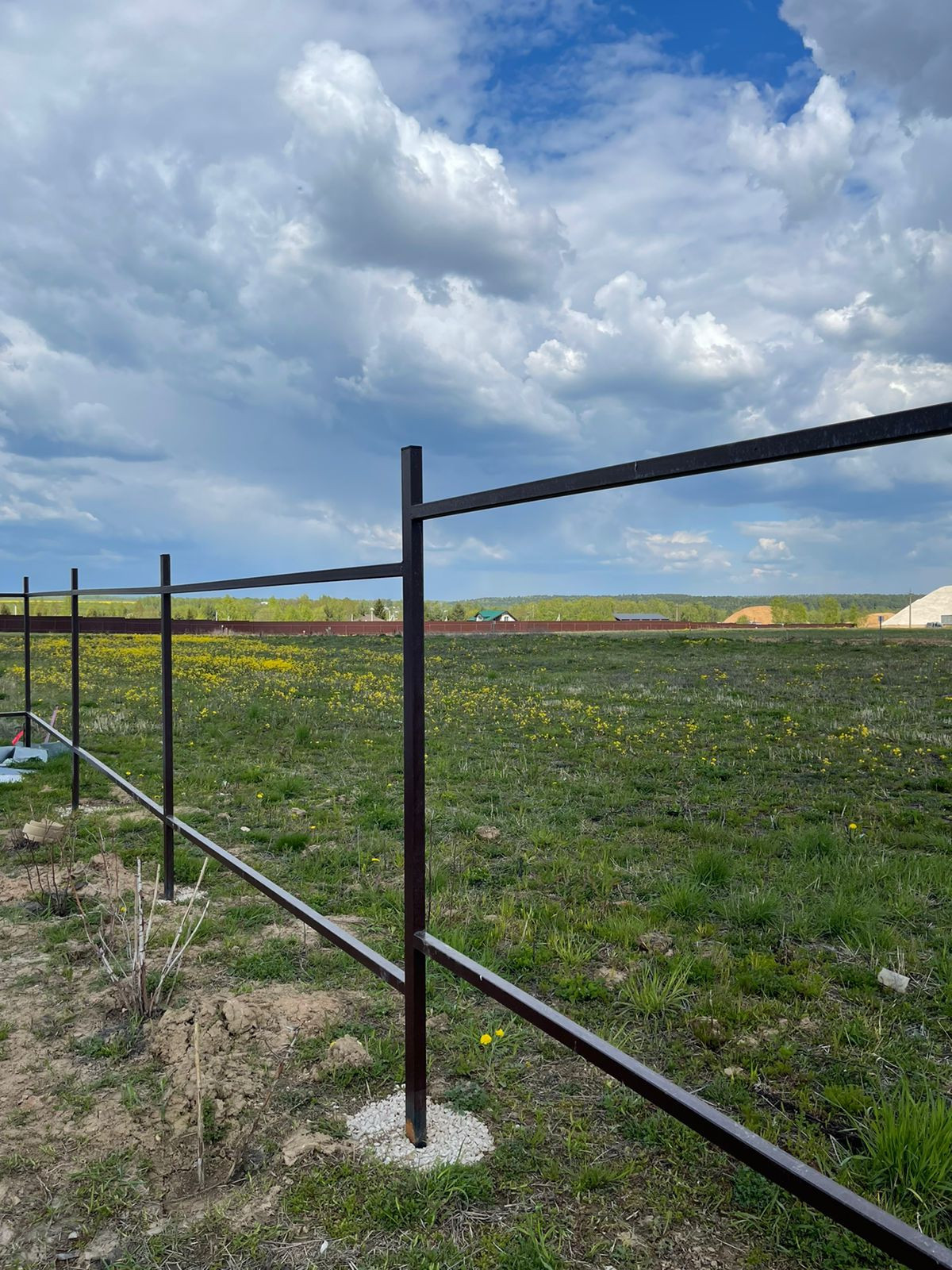 По периметру участка установлен каркас забора, осталось закрыть штакетником.