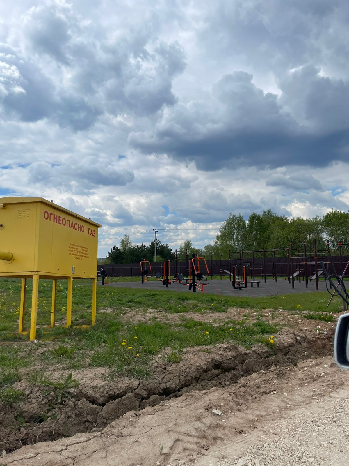 Участок выровнен, сделан въезд с дороги через ливневую канаву.