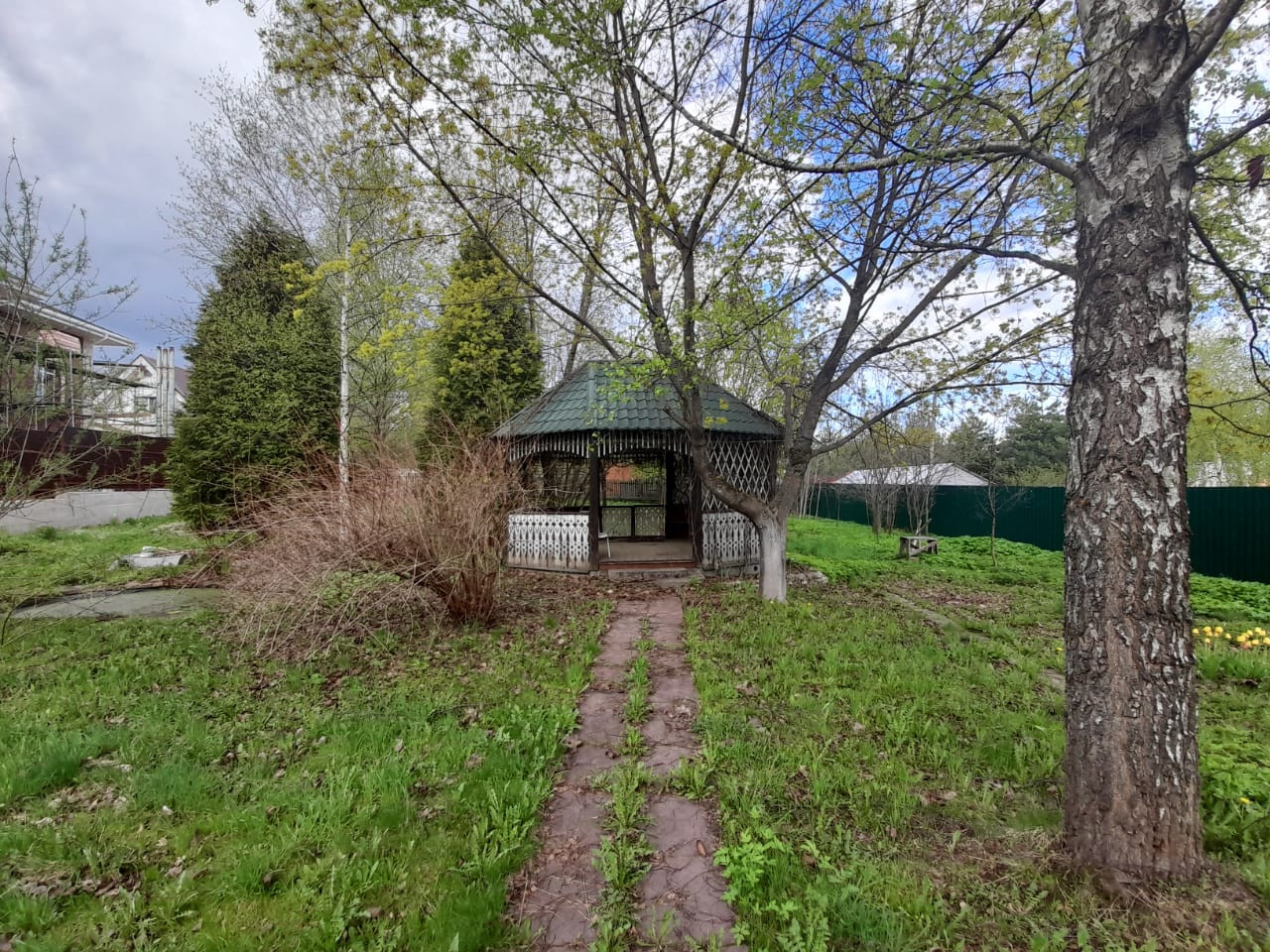 Участок правильной прямоугольной формы 27м х 75м.Рельеф ровный. Перед домом широкая бетонная площадка, вмещает до 5 автомобилей. В основании забора по всему периметру залита армированная лента. Есть второй колодец для полива и технических целей. На участке возведен второй гараж с хозяйственной зоной 42кв.м, беседка на ленточном фундаменте 17кв.м, крытый бассейн 54кв.м. Чаша бассейна из армированного бетона, коммуникации для автоматизированной фильтрации воды, укомплектован всем необходимым оборудованием. Площадь бассейна 30кв.м, глубина от 1,5 до 2м, объём воды 50куб.м (50 тонн). Закрытое помещение и система подогрева воды в бассейне позволяют купаться с мая по октябрь без оглядки на погоду. Рядом с бассейном можно разместить баню. На участке есть садовые и декоративные деревья и кустарники. Живописная садовая дорожка с аркой, увитой виноградом, ведет к прудику.