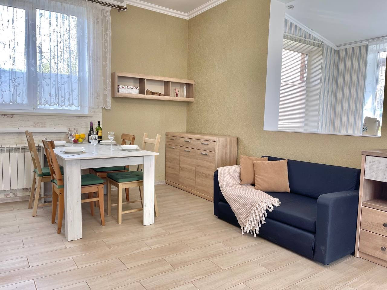 На цокольном этаже полноценная 2х комнатная квартира с собственной кухней и санузлом. Все квартиры полностью мебилированы!