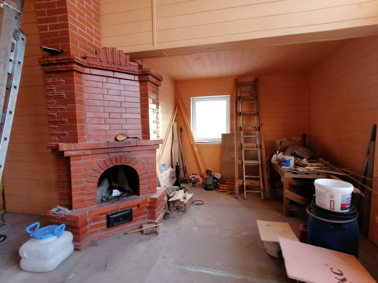 На первом этаже действующий и прекрасно обогревающий камин.