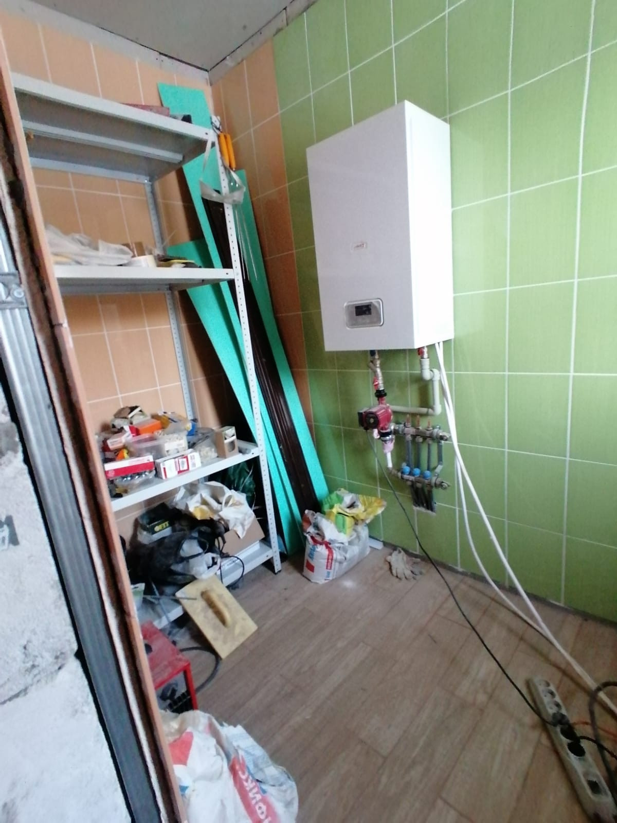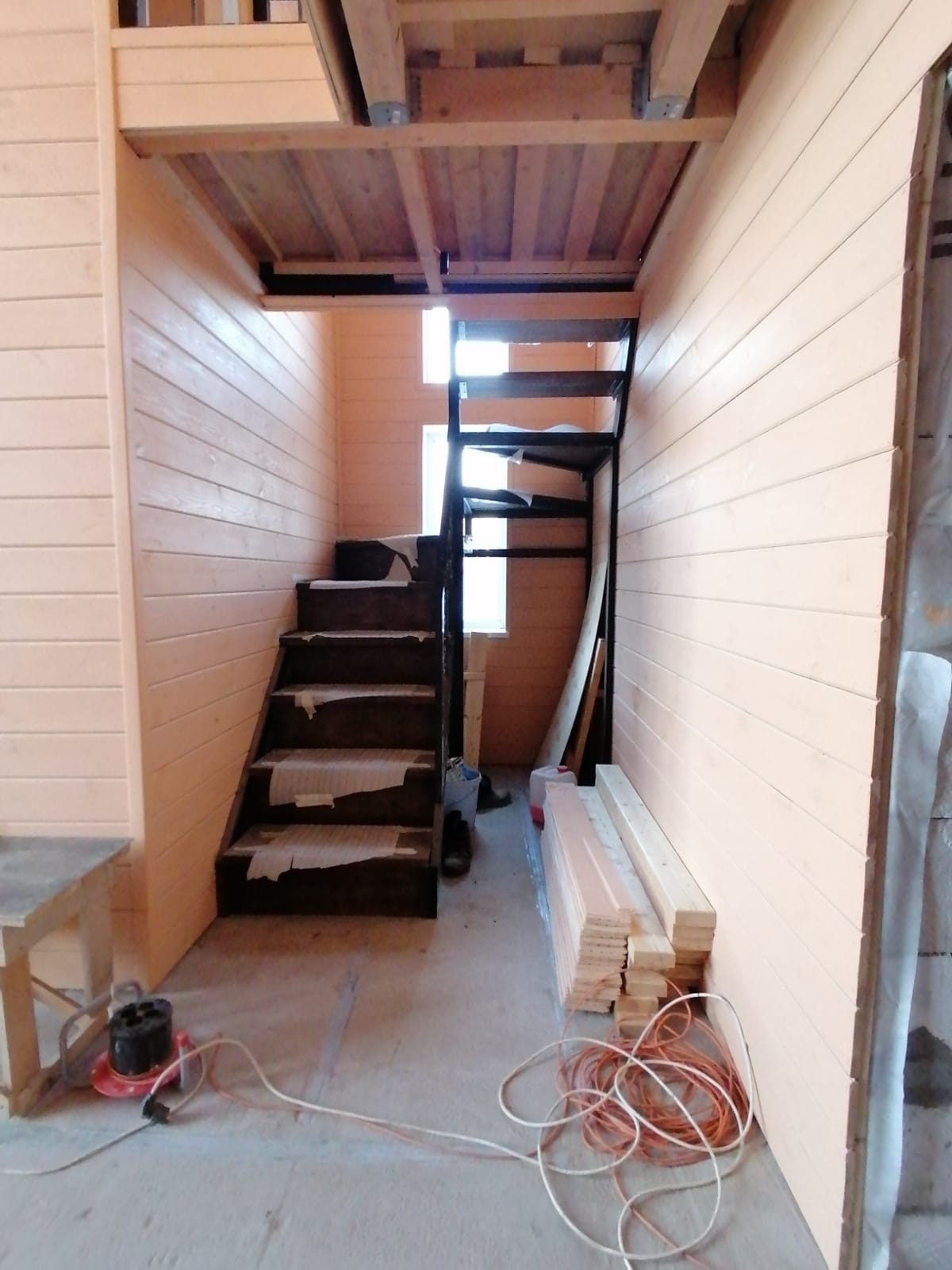 Дом 9 на 10, установлен котел, на первом этаже везде теплые полы, в санузле установлена инсталляция и выложен поддон для душевой зоны, проведена вода. Есть унитаз и раковина со шкафчиком для установки в санузле. Крыша металлочерепица со снегозадержателем.