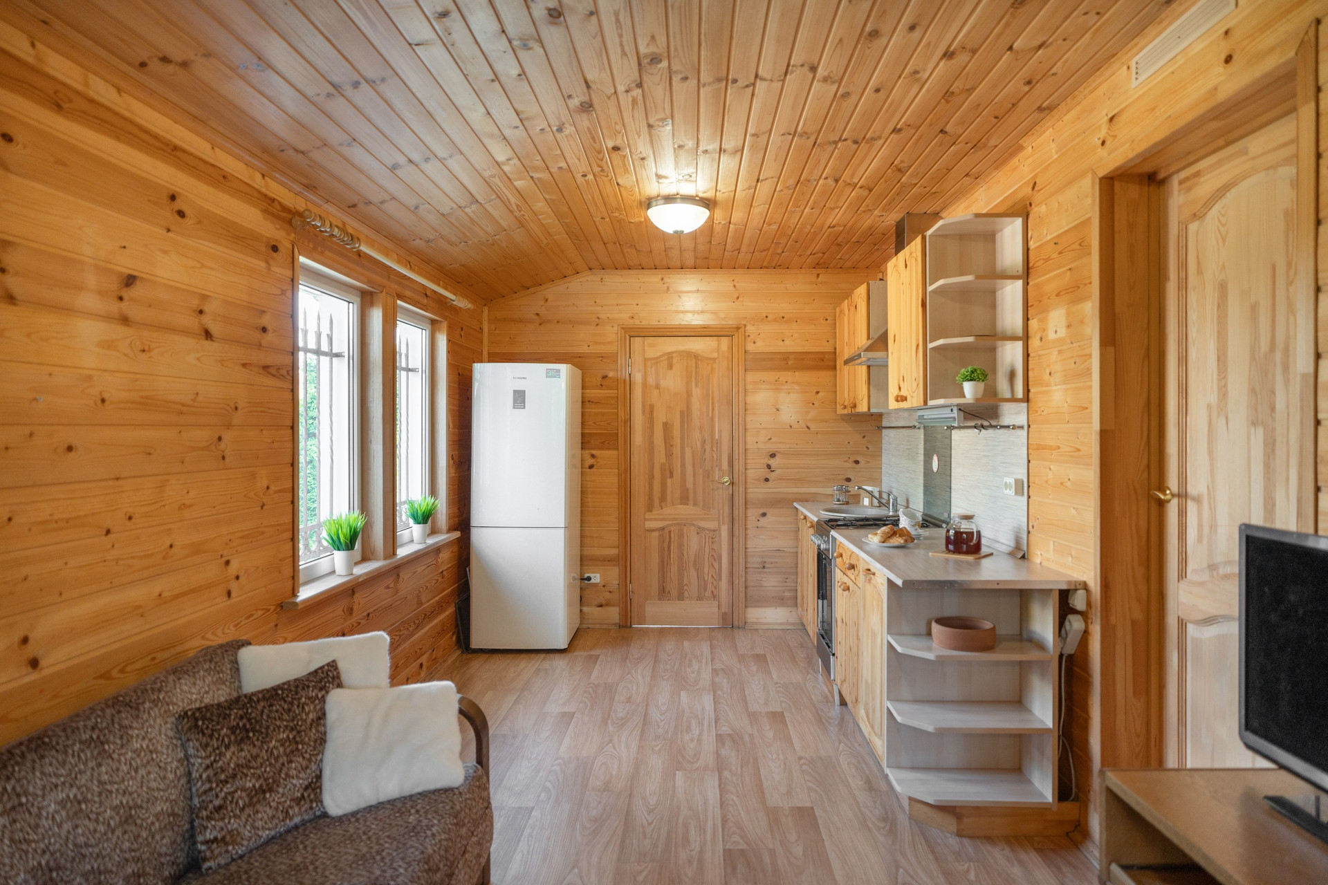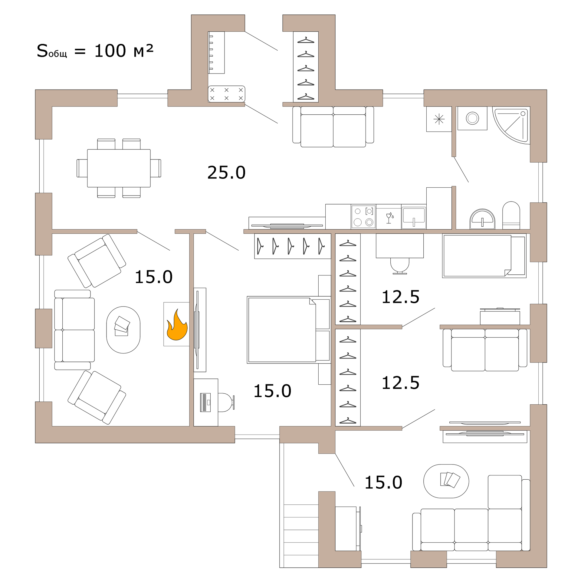 Планировка дома разделена на две части: основная и гостевая летняя. Всегда много места для размещения друзей и близких, при этом никто никому не мешает