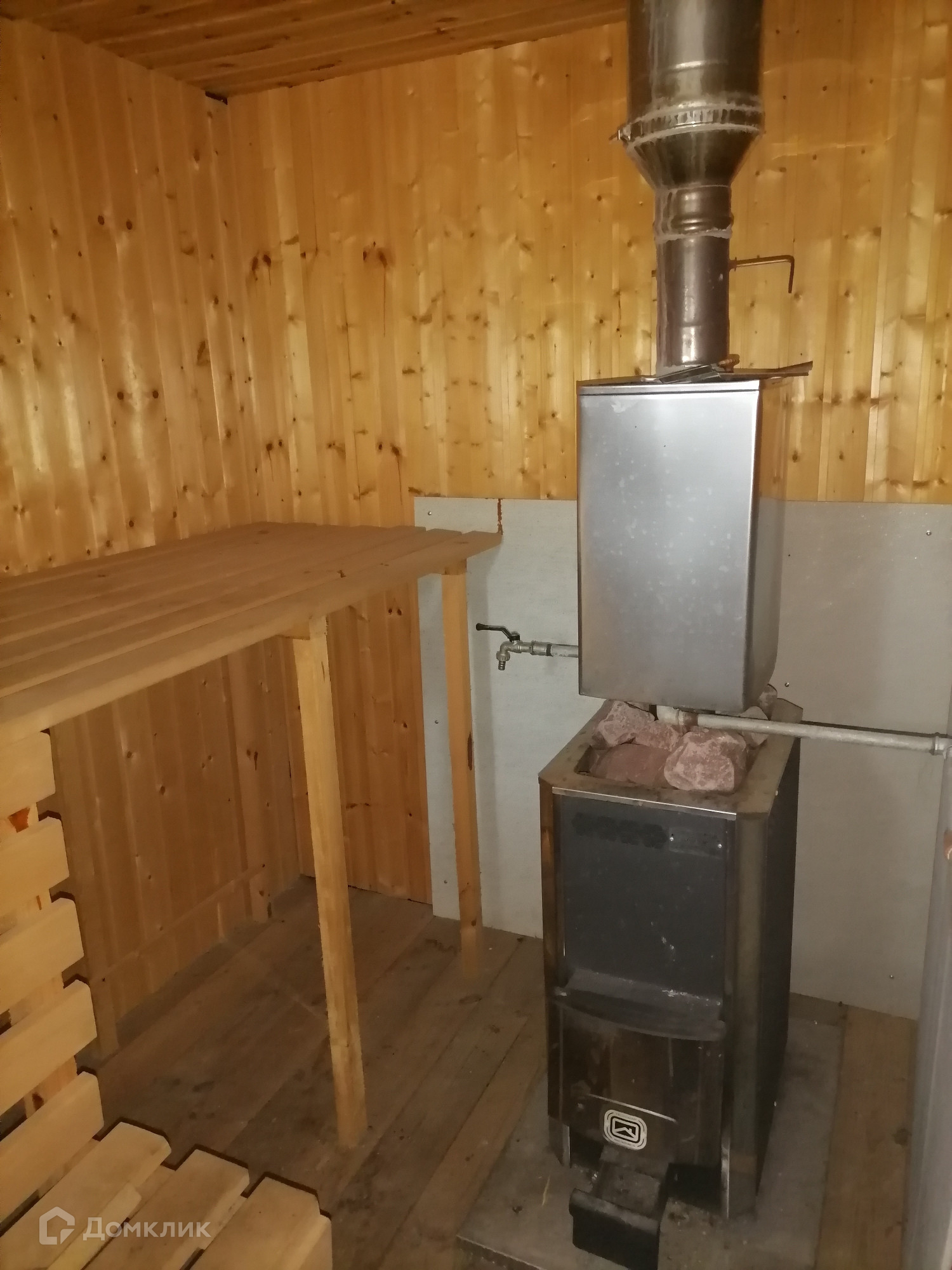 Изюминка этого предложения — баня на 6x6 метров с парилкой из липы, душем и газовой колонкой. Но что ещё важно: в бане уже есть комната для отдыха и возможность обустроить вторую.