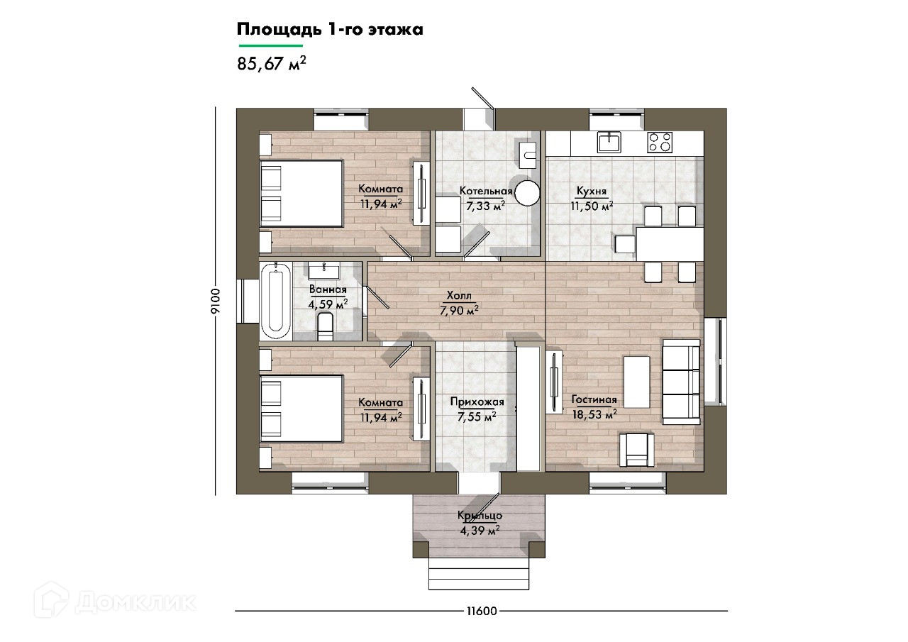 Общая площадь 86 м2