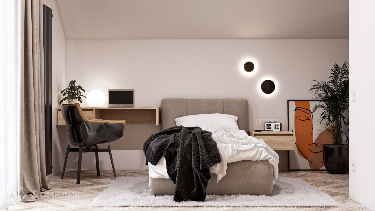 •Двухэтажный коттедж, общей площадью 126 м². С тремя изолированными комнатами, большой кухней-гостиной из которой предусмотрен выход на террасу, двумя санузлами, большой постирочной, гардеробной и котельной. С ремонтом по дизайн проекту, под ключ, с мебелью. Срок реализации проекта 6 месяцев.