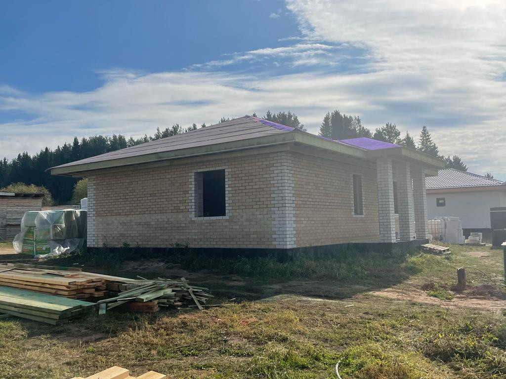 Коттедж одноэтажный общей площадью 100 м², строится по всем строительным нормам и требованиям, по индивидуальному проекту.