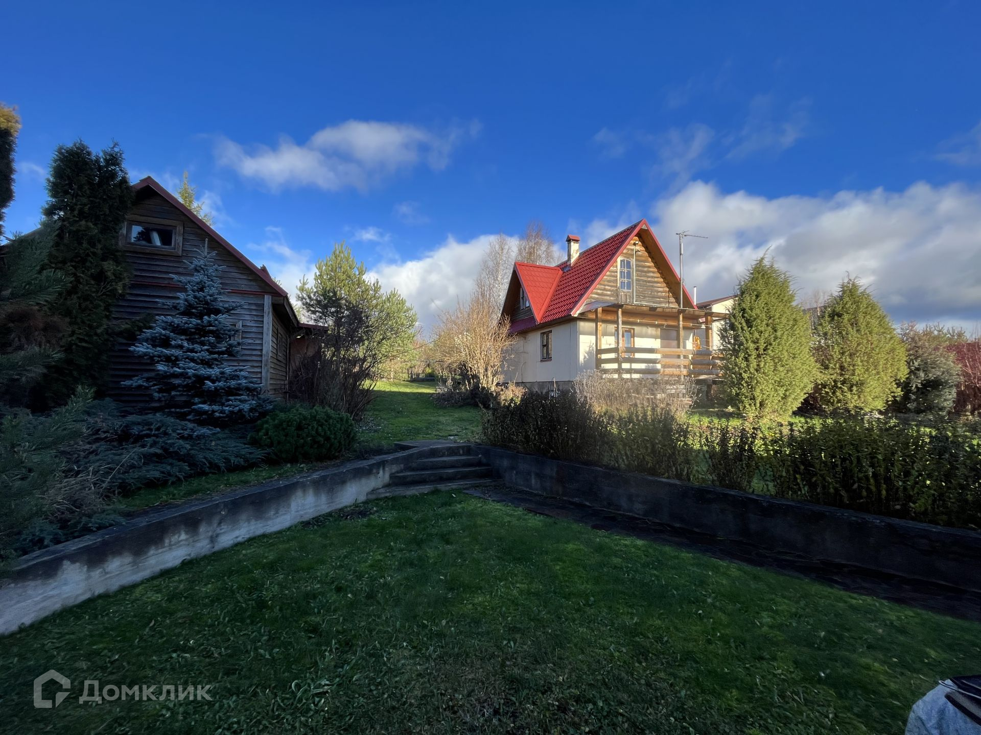 Участок ровный, правильной формы, огорожен, оборудована площадка для стоянки нескольких автомобилей. Участок поднят, сделана ливневка, дренаж по всему участку. На участке также есть бытовка, большая двухэтажная баня с дровяной печью и гараж.