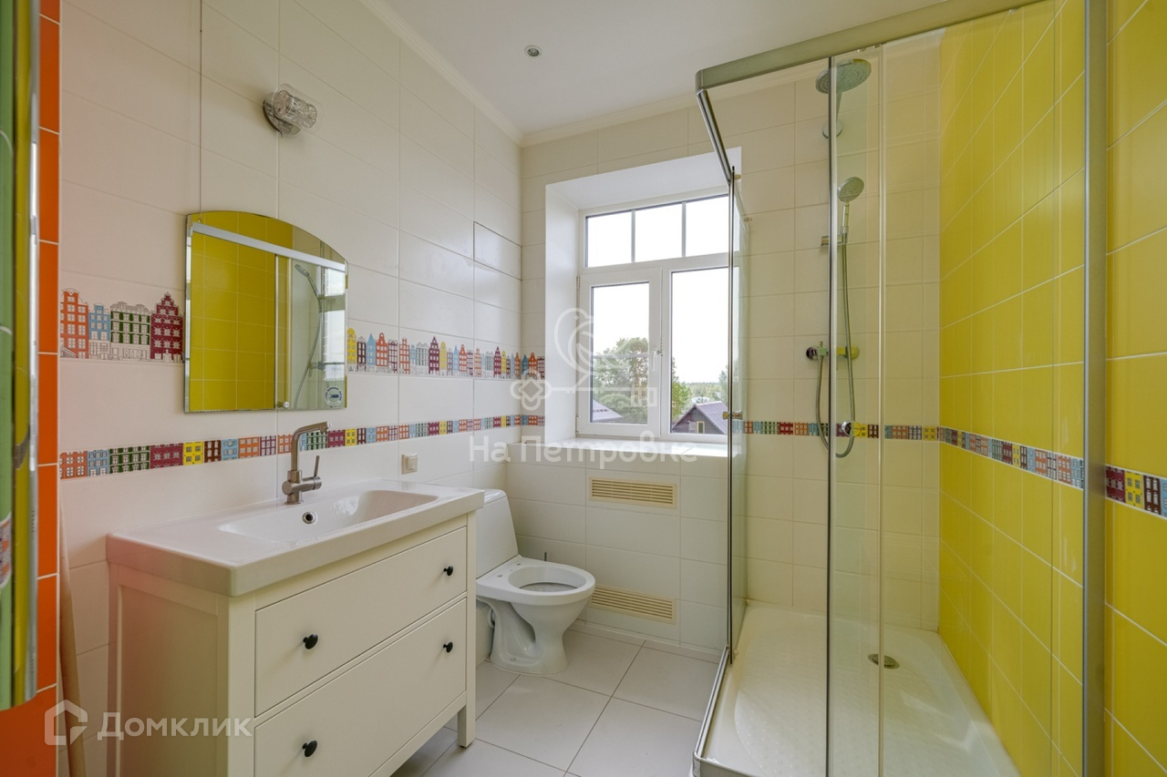 На цокольном этаже мастерская, санузел с душем, бойлерная, помещение для хранения продуктов и большая комната с выходом во двор. Всего в доме шесть жилых комнат, три санузла.