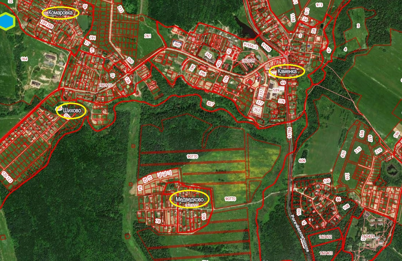 Коммуникациями: электричество – 30 кВт (возможно увеличение до 100), ливневка, вода (скважина). Деревня газифицирована.