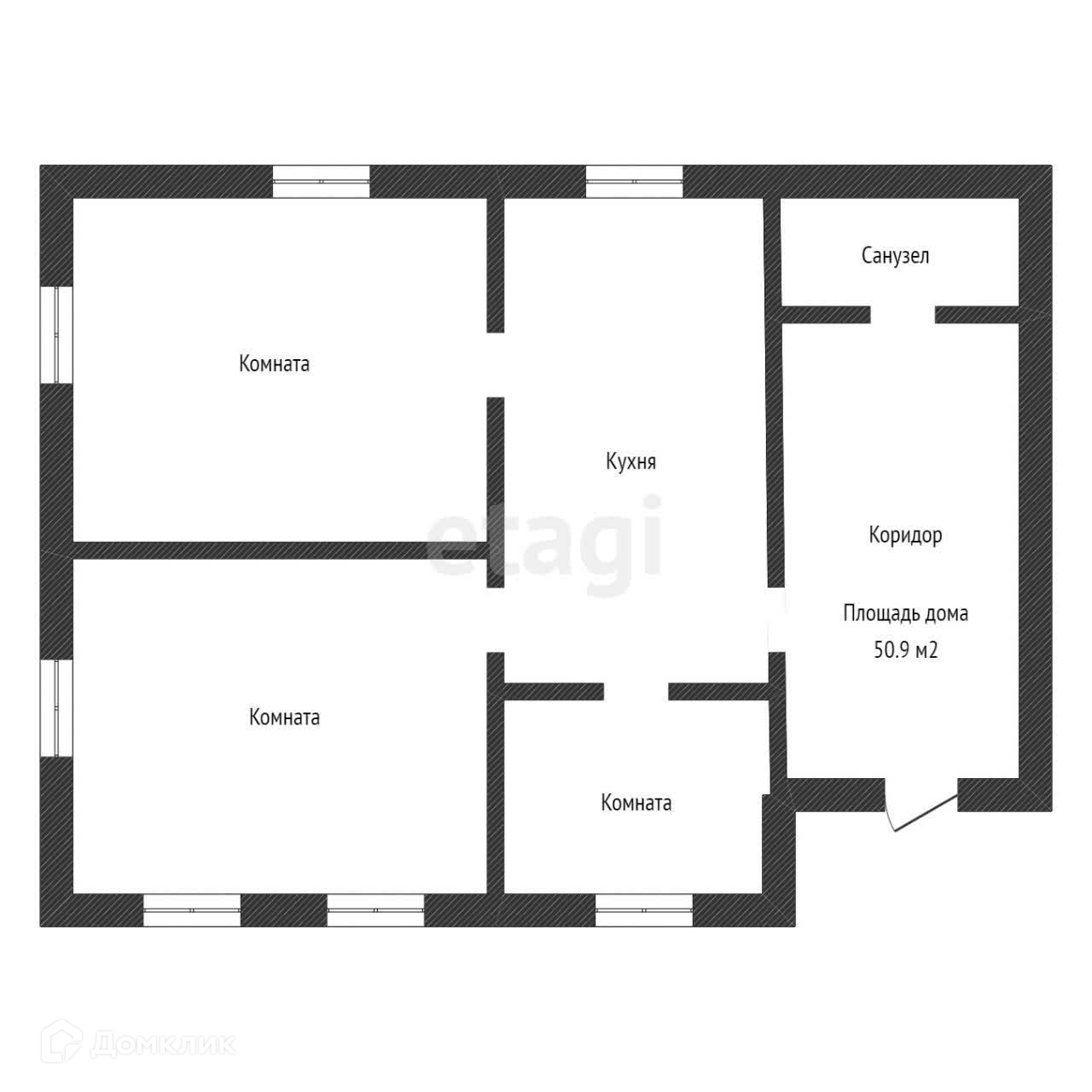 Общая площадь 50.9 м2