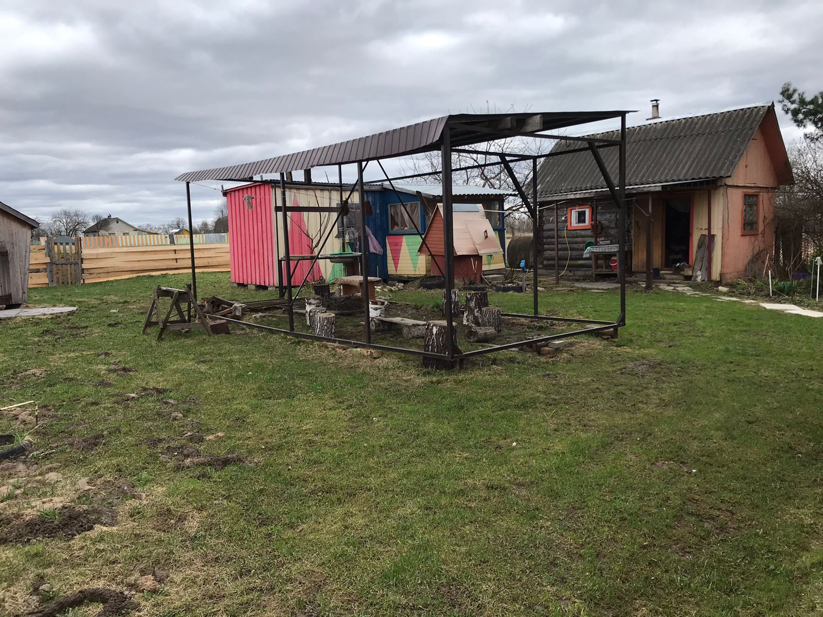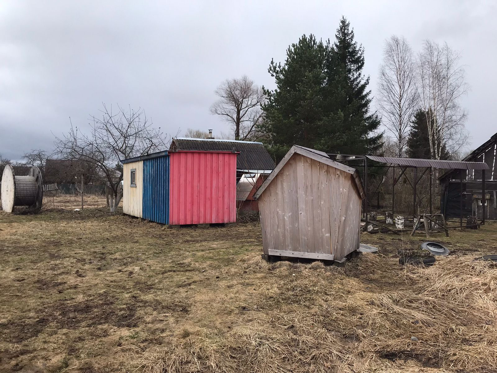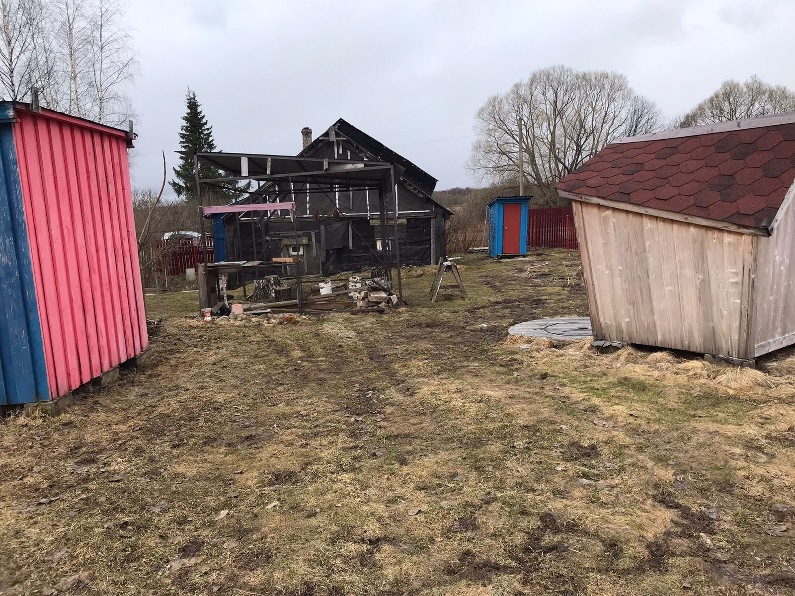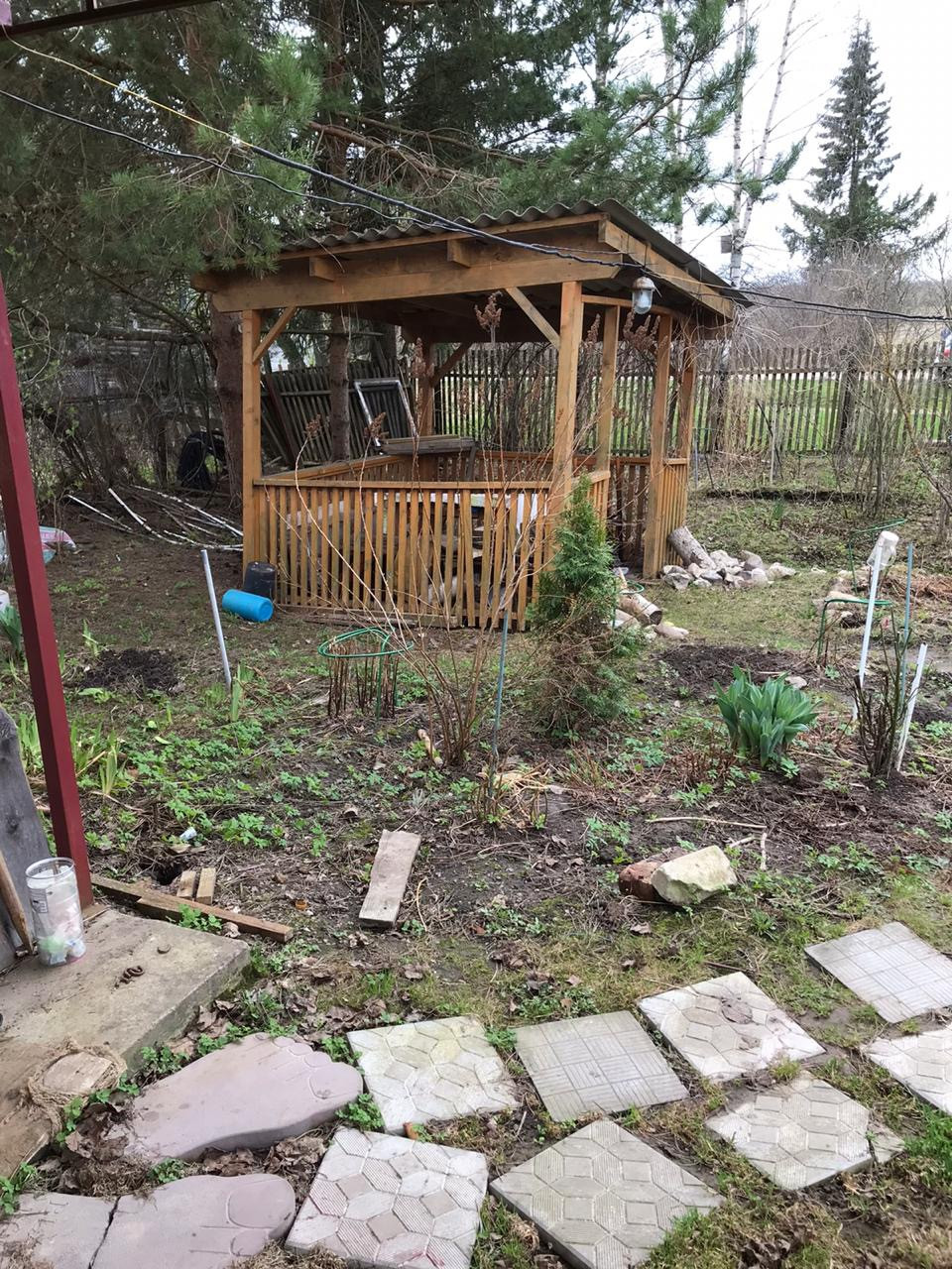 Также есть навес, беседка, плодовые деревья и кустарники, высажен зимний чеснок, лук.