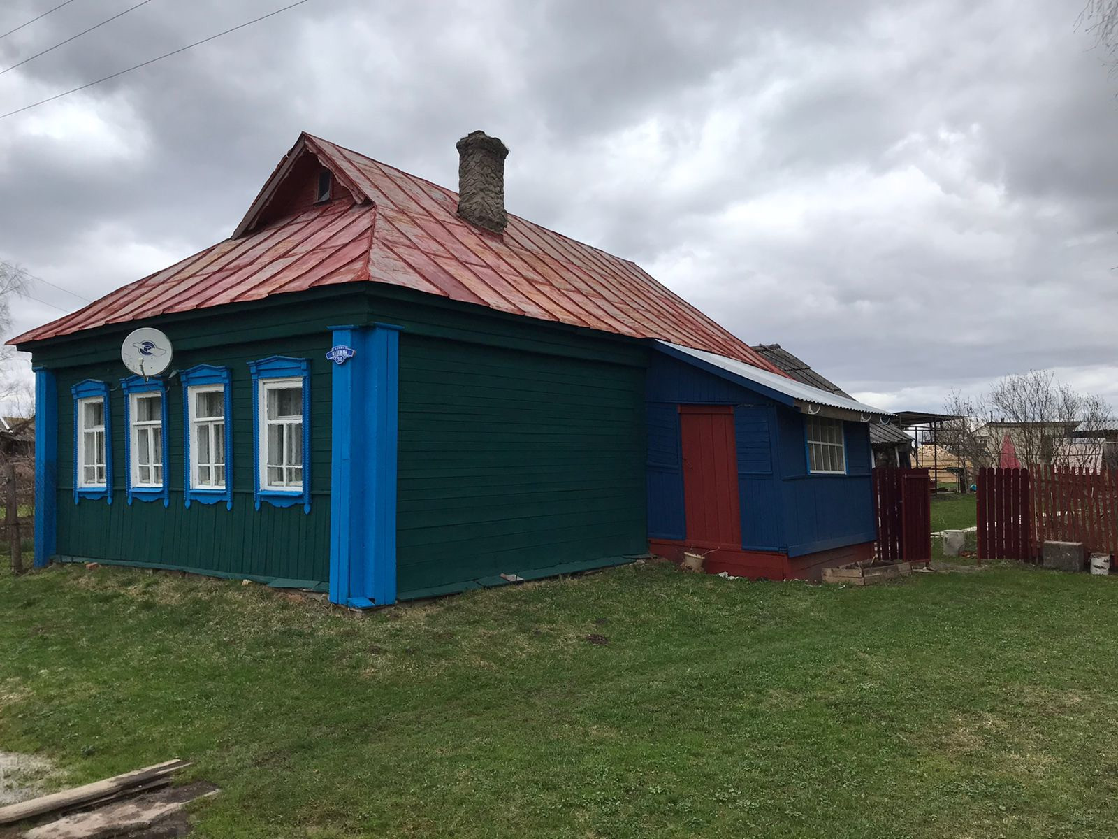 Дом деревенский, газ балон, отопление печь. Есть плита, холодильник. Дополнительные постройки: баня, летний домик. Свет проведен во все строения. Колодец.