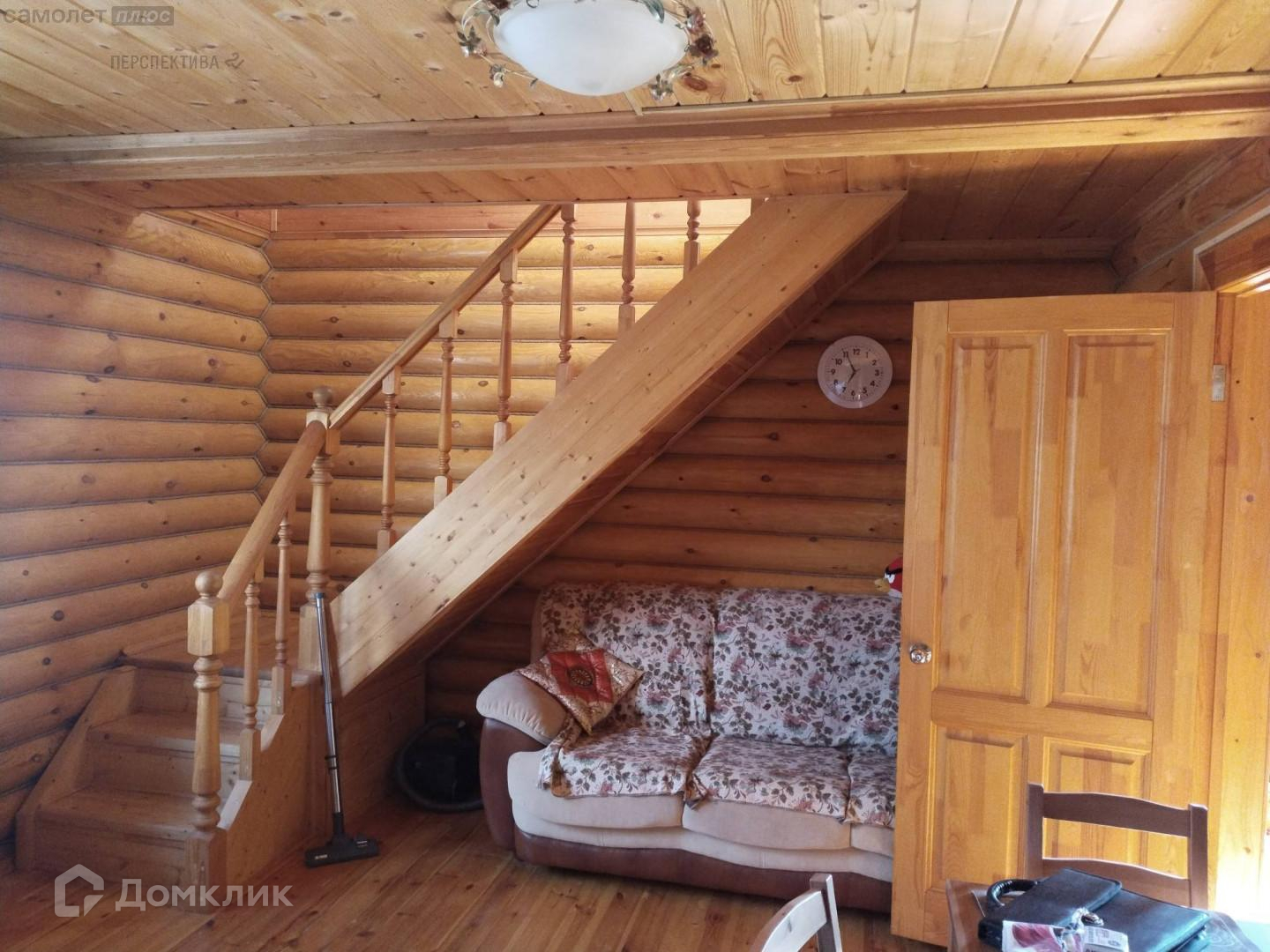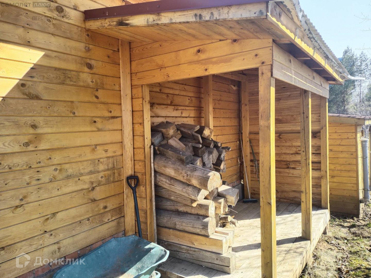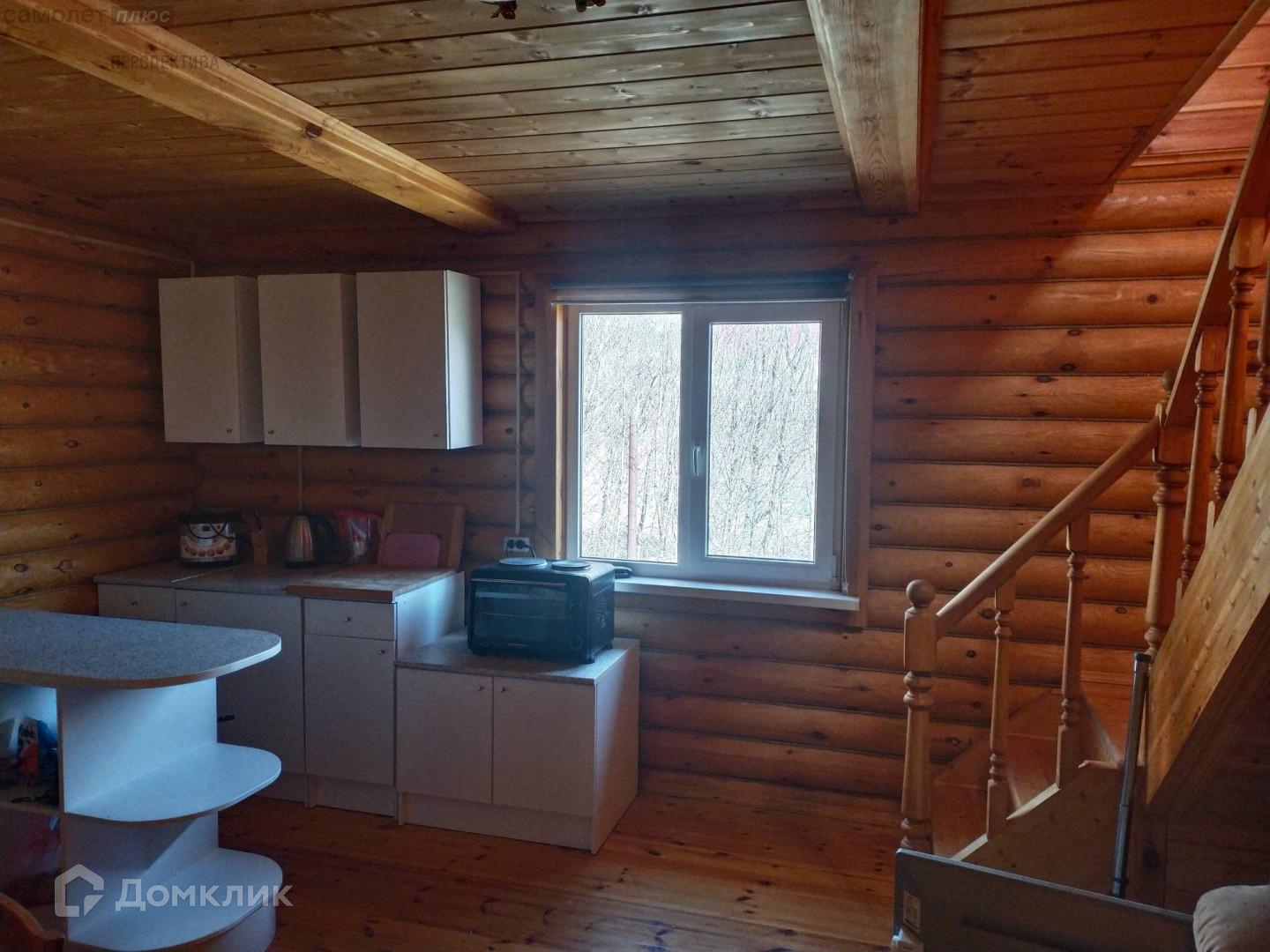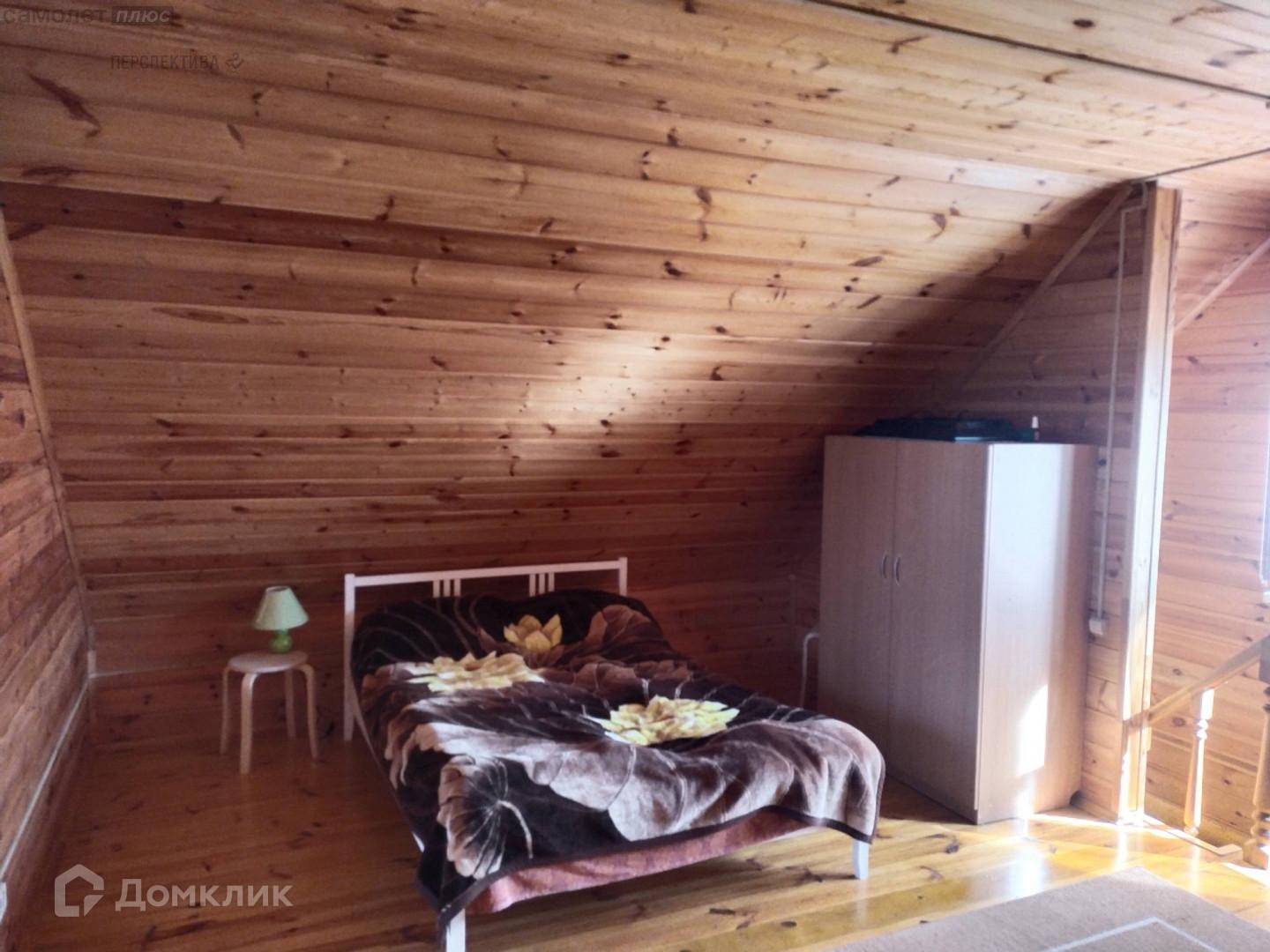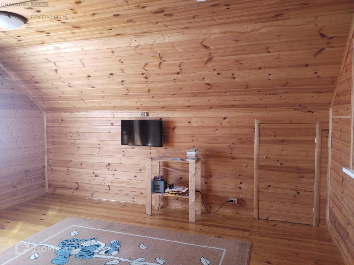 На первом этаже гостиная, кухня и спальня. Второй этаж свободной планировки, по всему периметру крыши установлены ниши- кладовые. Балкон второго этажа обшит деревом. Так же имеет свои кладовые для хранения. Под домом залит фундамент по периметру всего дома с высотой потолков 2,5- 3 метра, на данный момент цокольный этаж не используется.