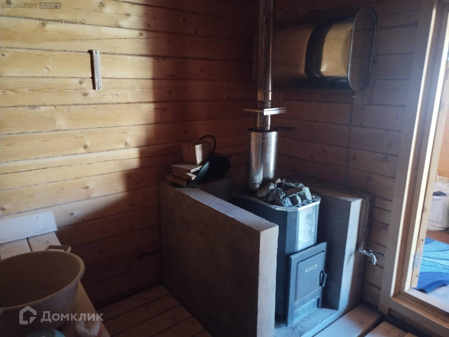 На участке стоит баня из бруса, обшитая блокхаусом. Прекрасная печь сухого пара. Второй этаж подготовлен к утеплению.