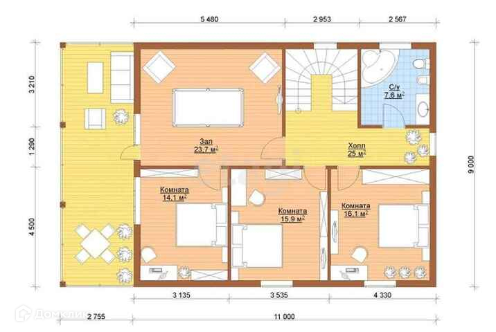 Основной дом: стены, потолок(утеплитель 200)- имитация бруса, прихожая, кухня-гостиная, два санузла, гардеробная, 4 спальни.