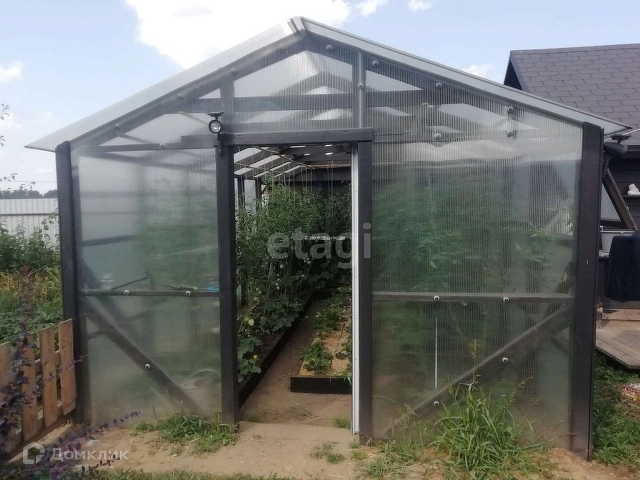 Участок ровной формы, на котором расположены : теплица, летняя кухня, помещение для хранения личных вещей, основной и гостевой дома.
