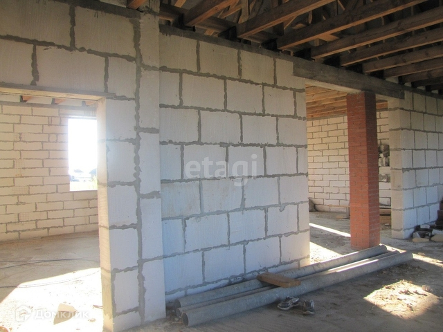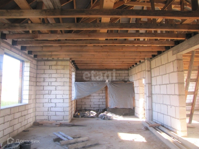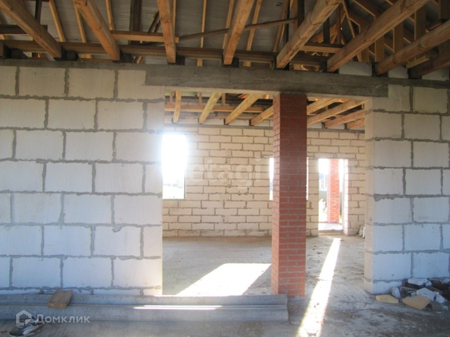 Дом в черновой отделке. Площадь 200 кв.м. Крыша полностью покрыта, высокая, позволяет сделать мансардный второй этаж плюсом.