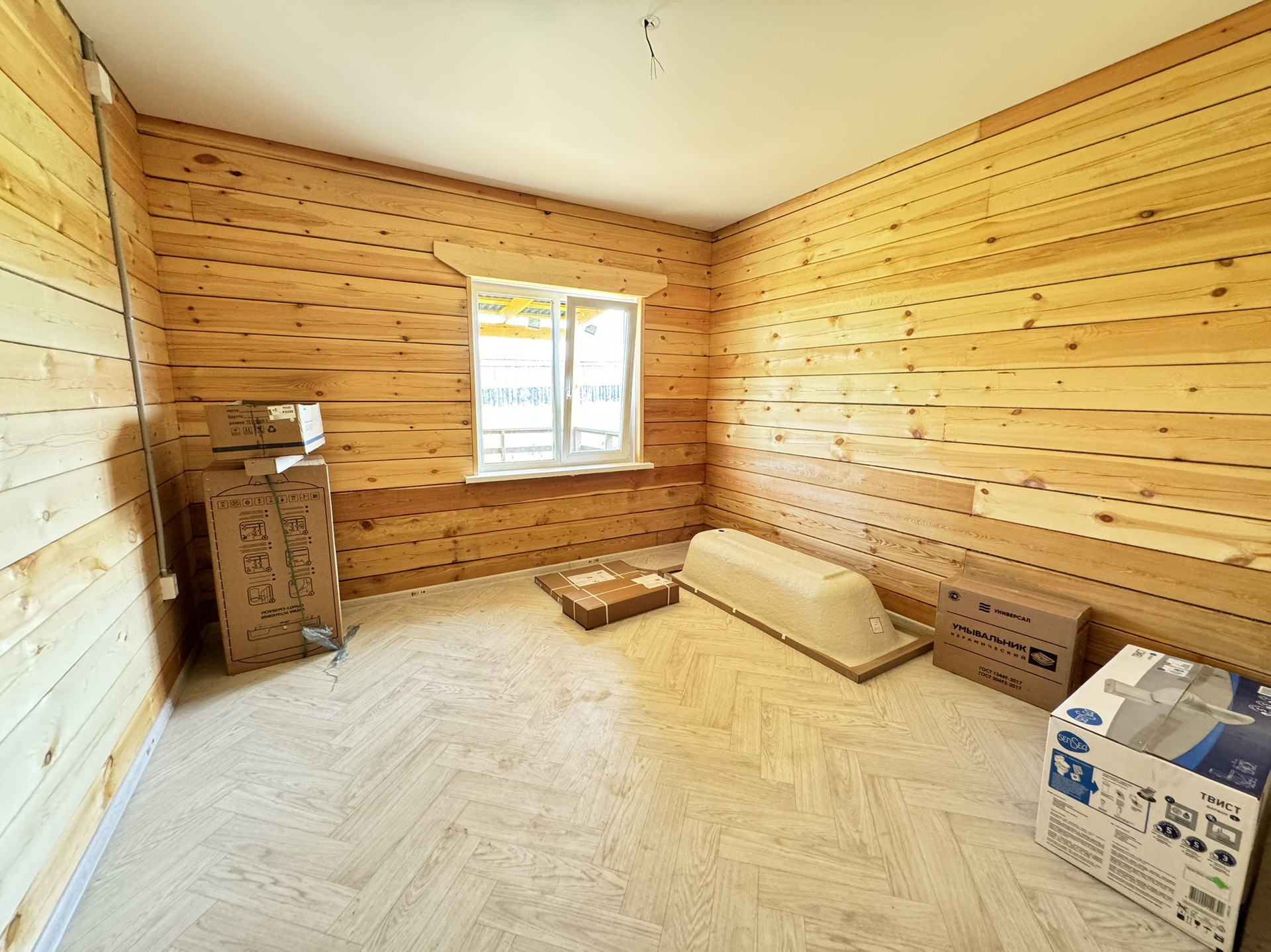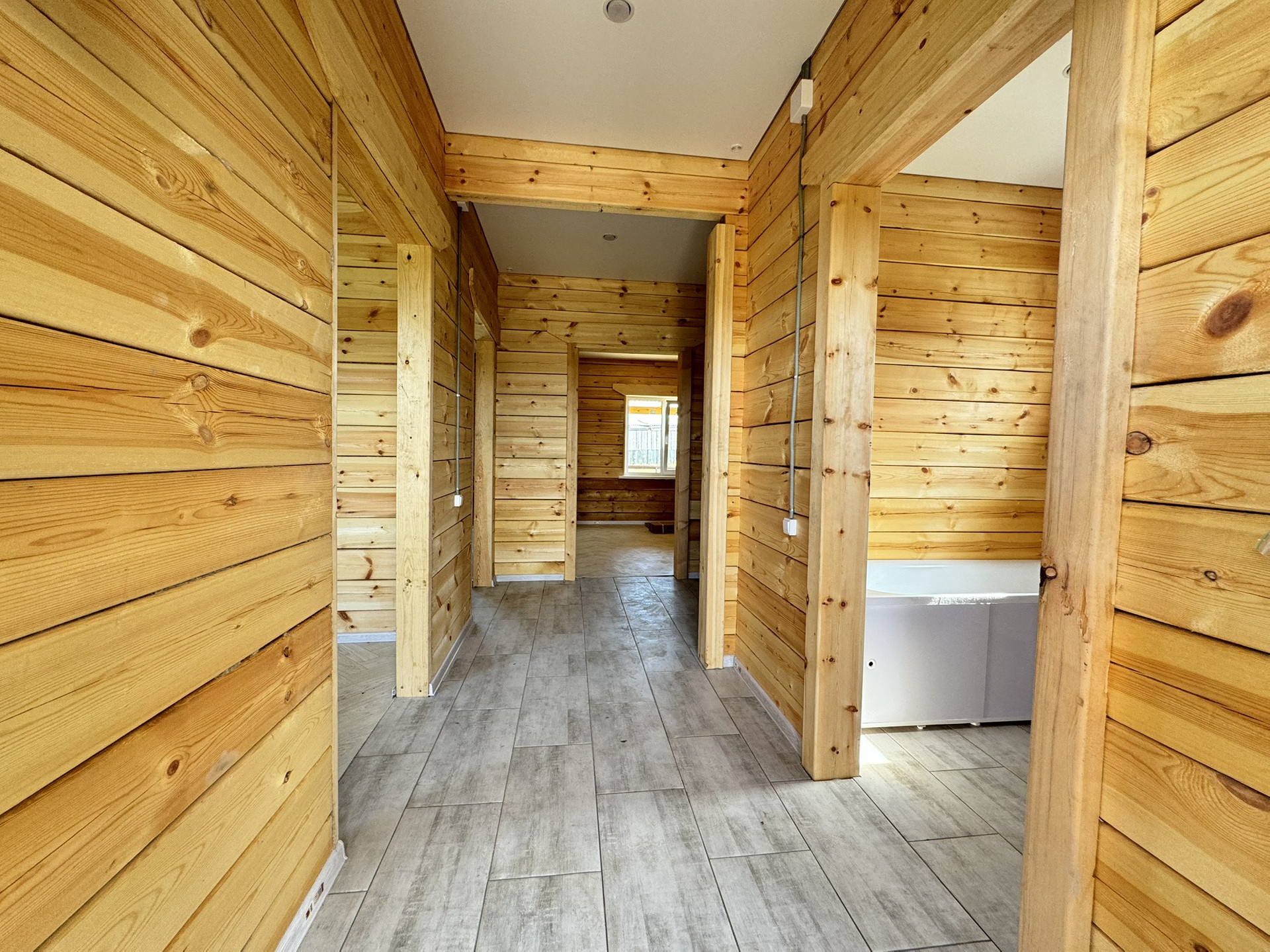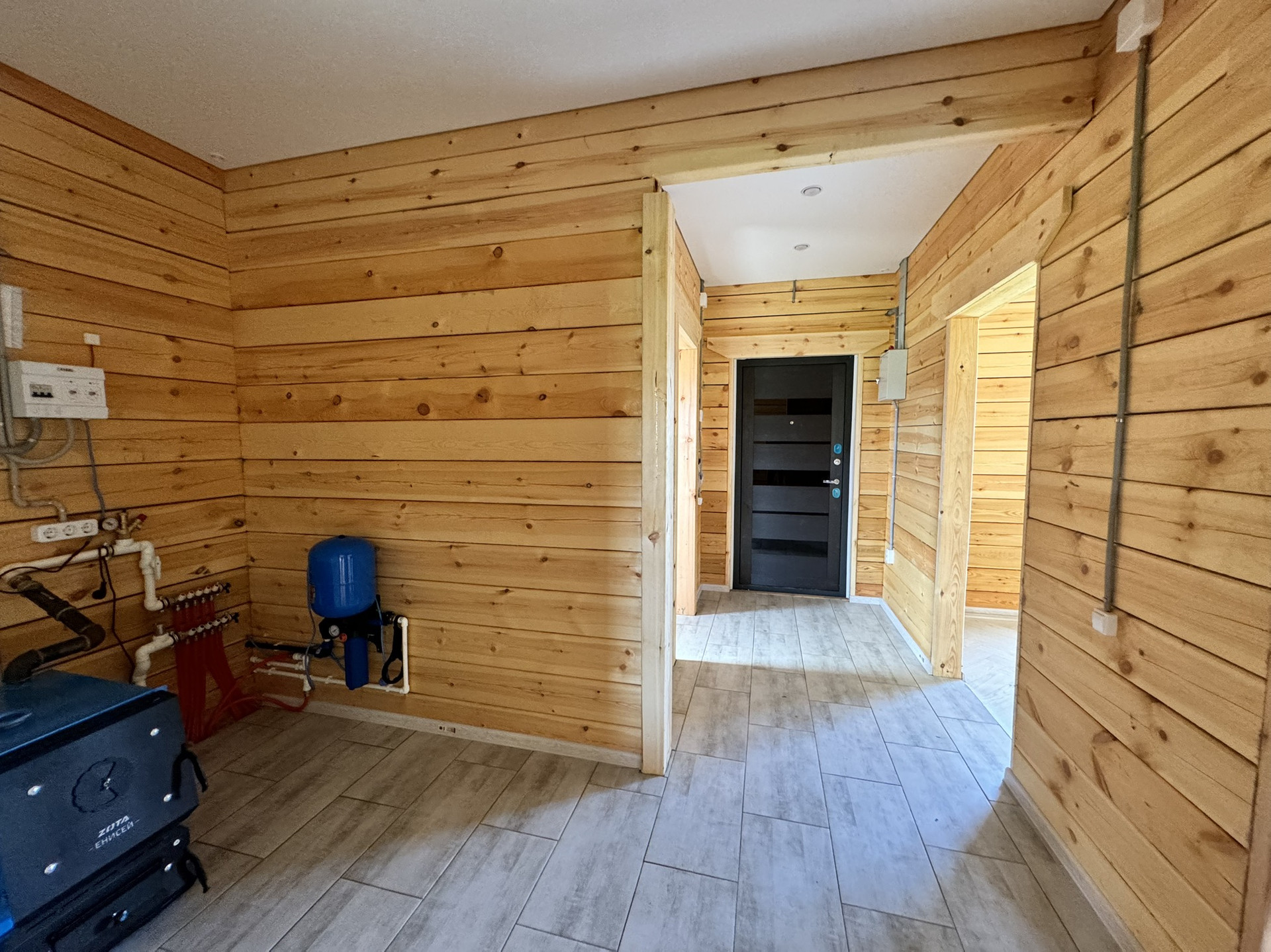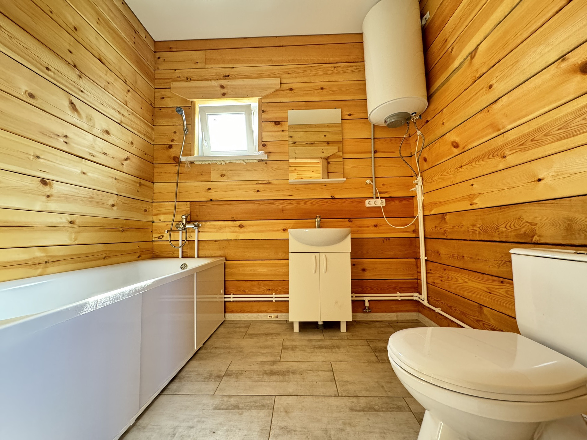Натяжные глянцевые потолки, точечные светильники. Яркое освещение, даже в пасмурные дни в доме свгетло и уютно! Установлена сантехника: унитаз, ванна, раковина. Установлен водонагреватель, скважинная автоматика. В доме проведены все инженерные коммуникации: разводка электрики и центральный электрощит, разводка водопровода, разводка канализации, отопление теплый пол. Дом очень теплый, зимой вы будете экономить на электричестве (электричество 15 кВт, 3 фазы).