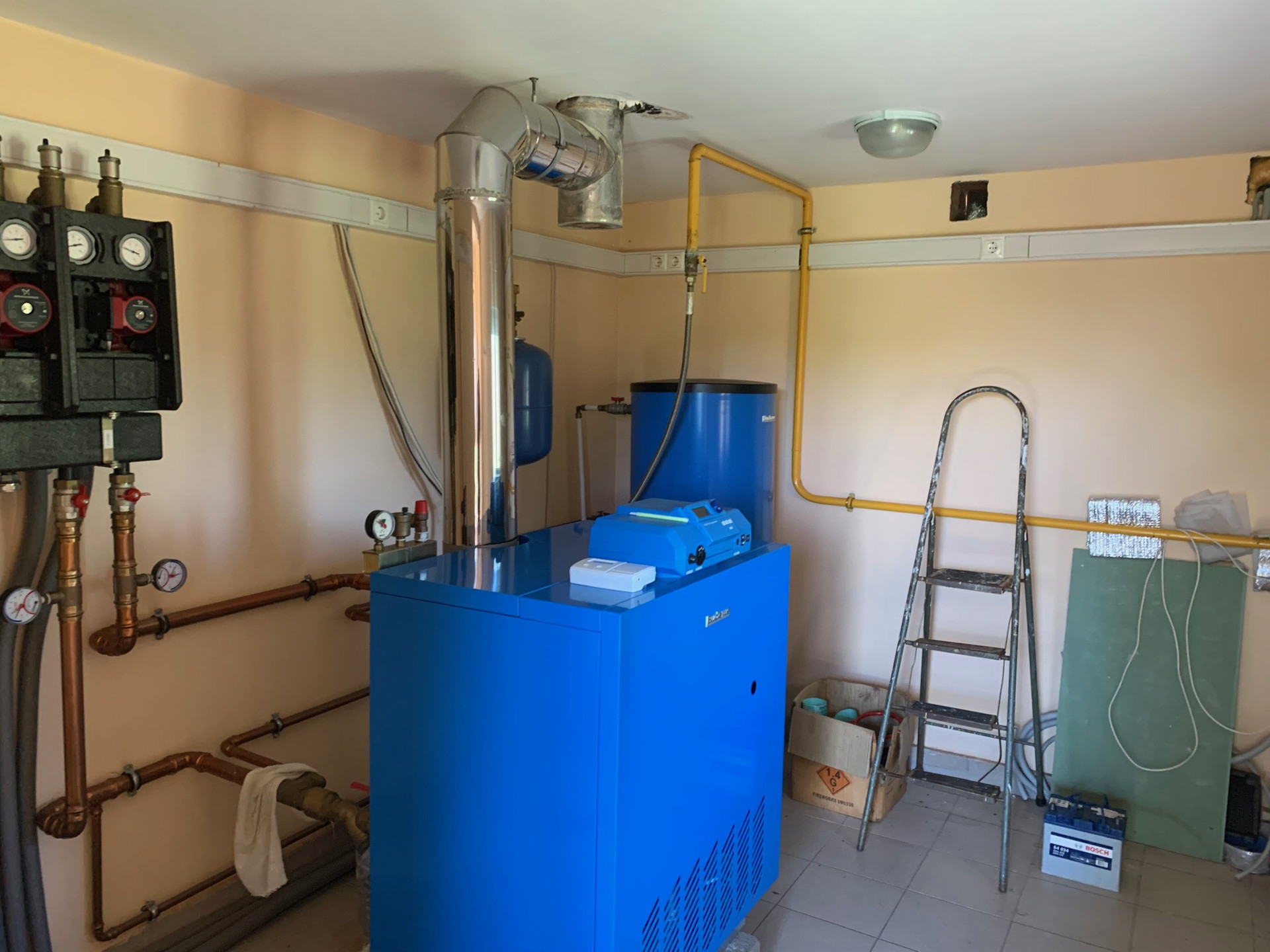 Коммуникации: центральный газ, вода из колодца заведена в дом и  баню, электричество 30 кВт, плюс газовый мощный генератор на всякий случай, газовое индивидуальное отопление, теплые полы.