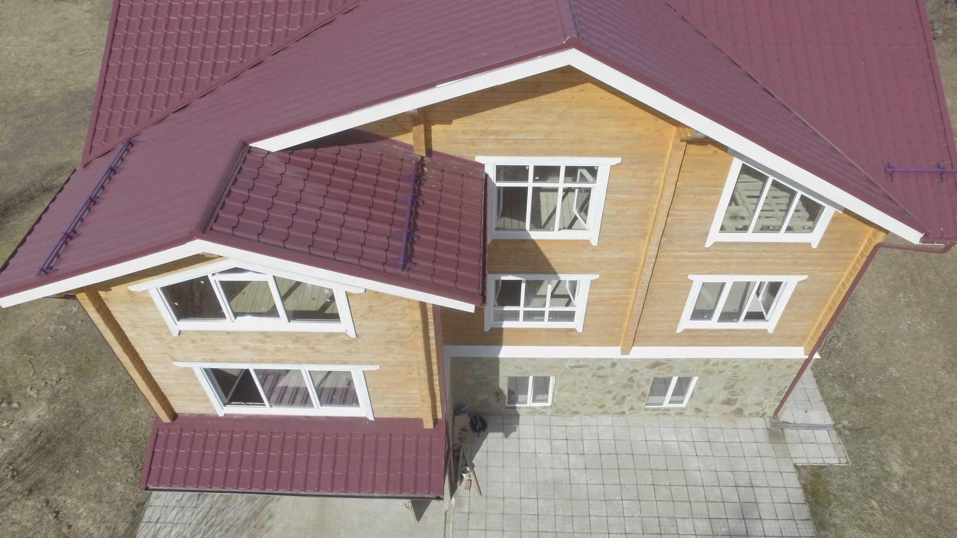3-й этаж дома (высота потолка 2,7 м) - из профилированного бруса (190*185 мм), свободная планировка (возможно, например, расположение 4 спальни), 2 санузла, бильярдная, гостиная столовая, балкон. Крыша - металлочерепица.