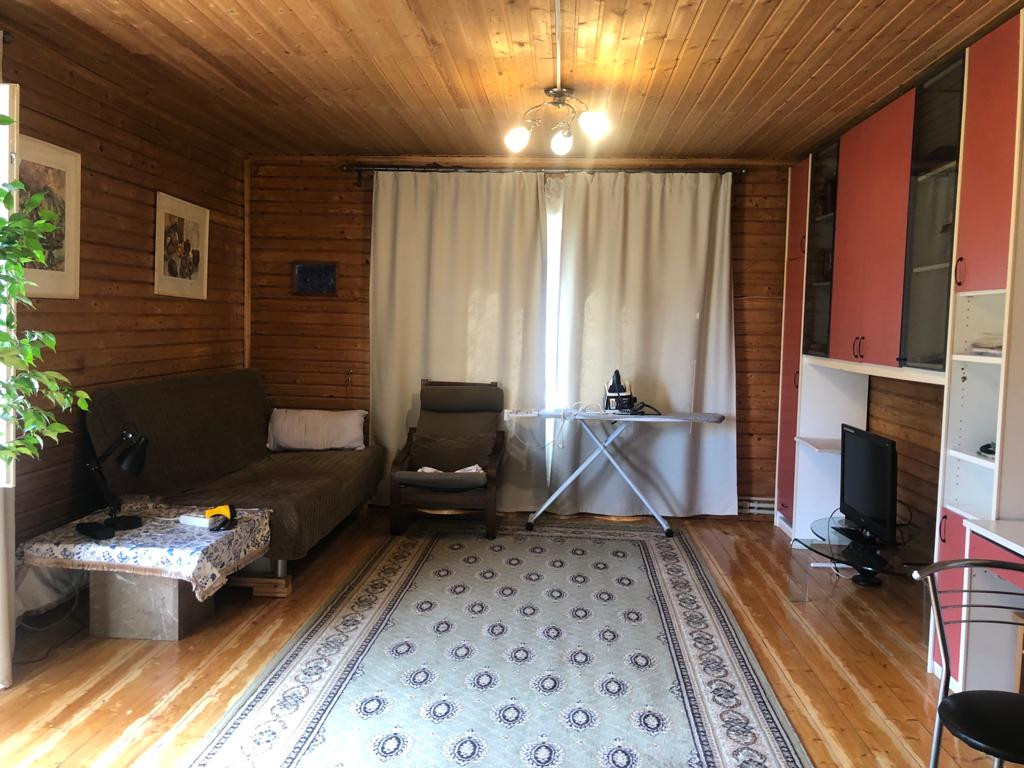 1 этаж из клееного бруса: спальня, гостиная, кухня и санузел.