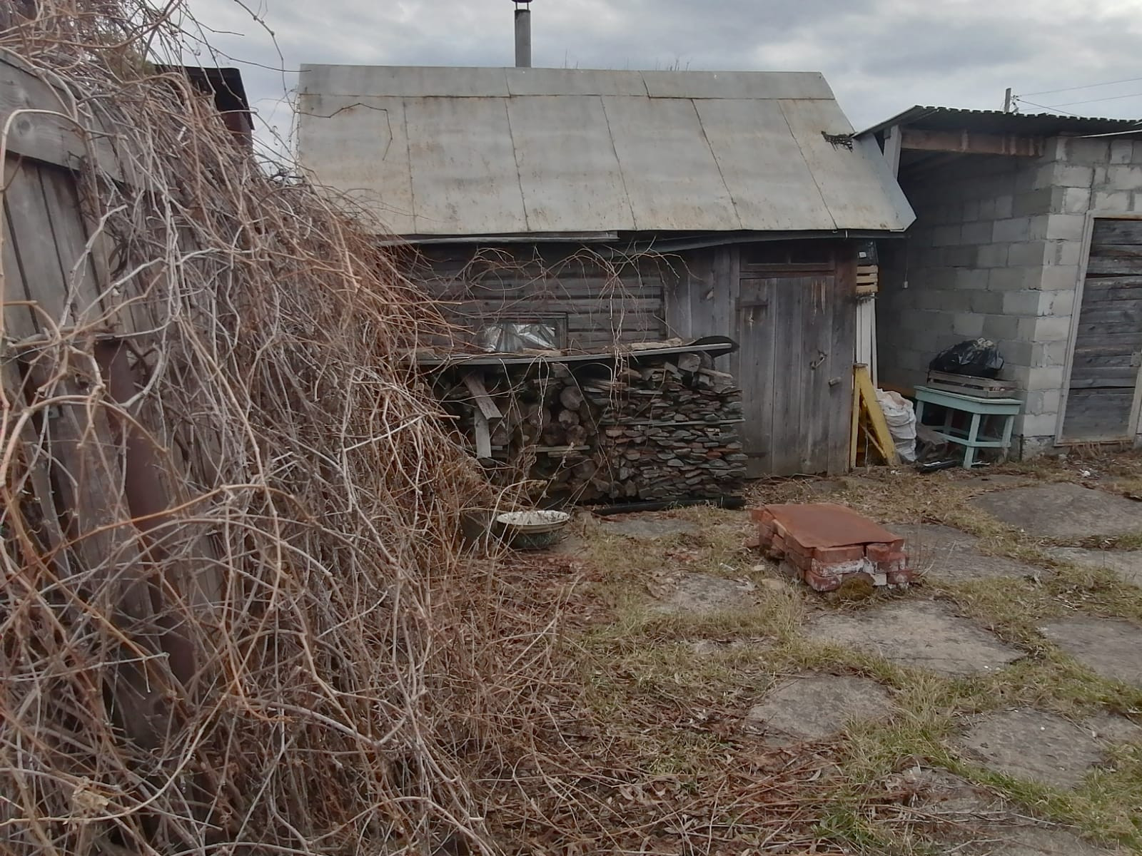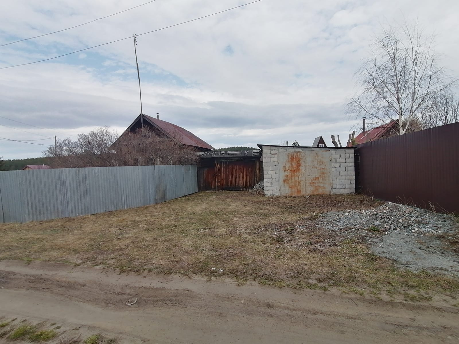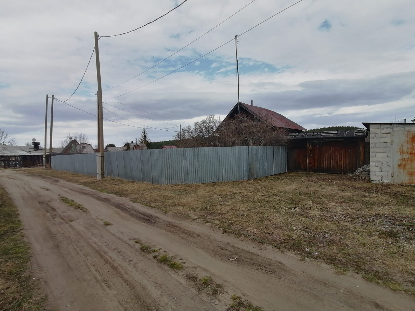 Дом небольшой, рубленный, есть скважина 40м., баня 10 кв.м., теплица и капитальный шлакоблочный гараж. Забор по фасаду из профнастила.