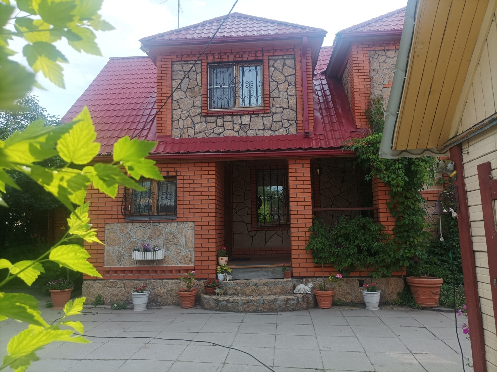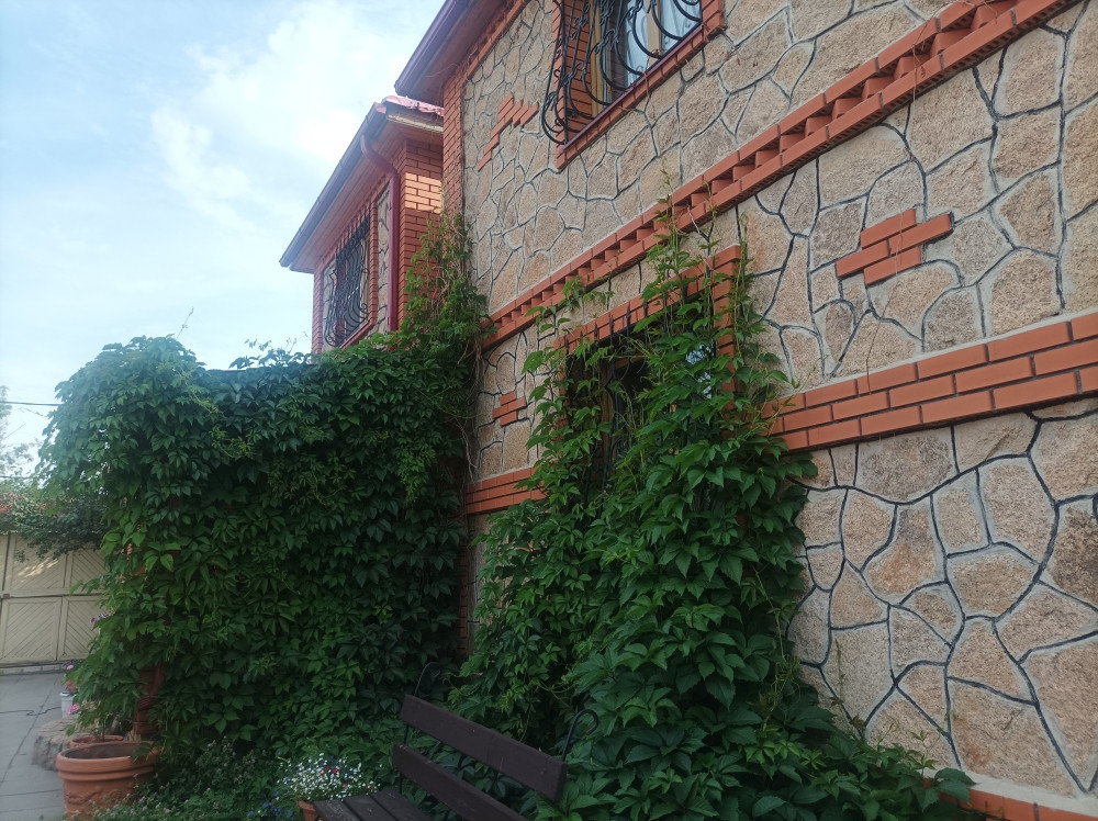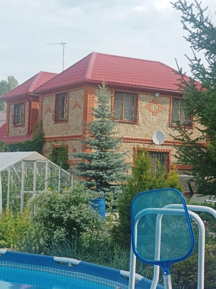 Дом строил для себя профессиональный строитель. Фундамент : буро - набивные сваи, ростверк. Стены из бруса 150, утеплены пенно- полистеролом, облицовка – натуральный камень и кирпич. Крыша – метало черепица Санузлы на первом этаже, септик.