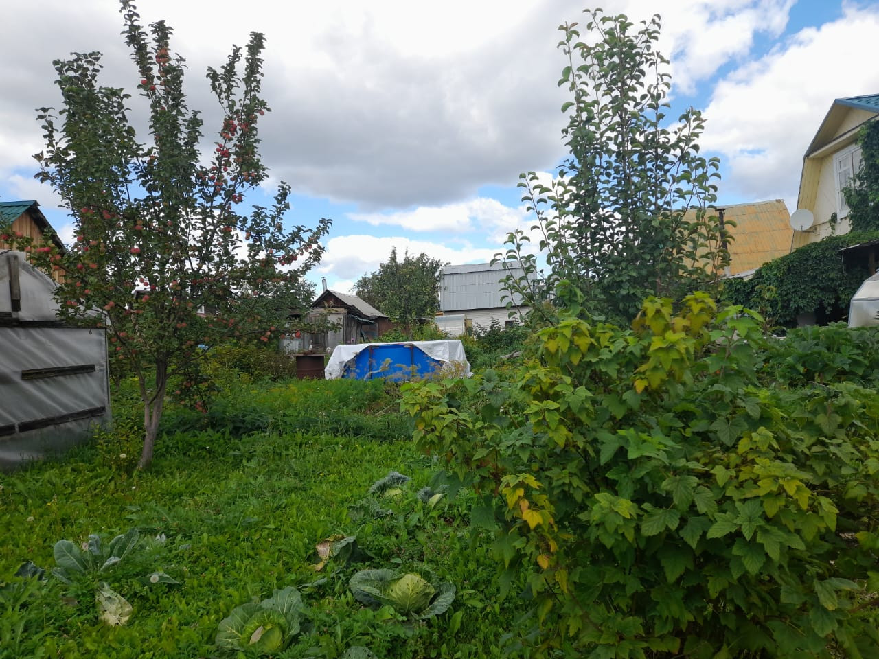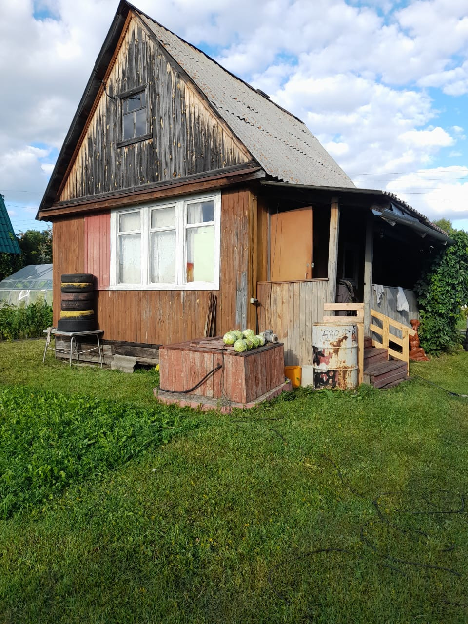 Новая баня, туалет на улице, теплица, сарай для хранения инвентаря.