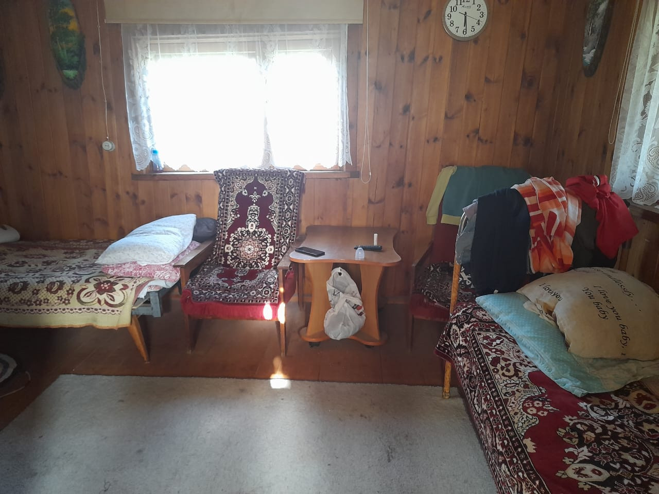 Дом 6×6 из бревна, утеплен с наружу и внутри обшит дополнительно вагонкой.