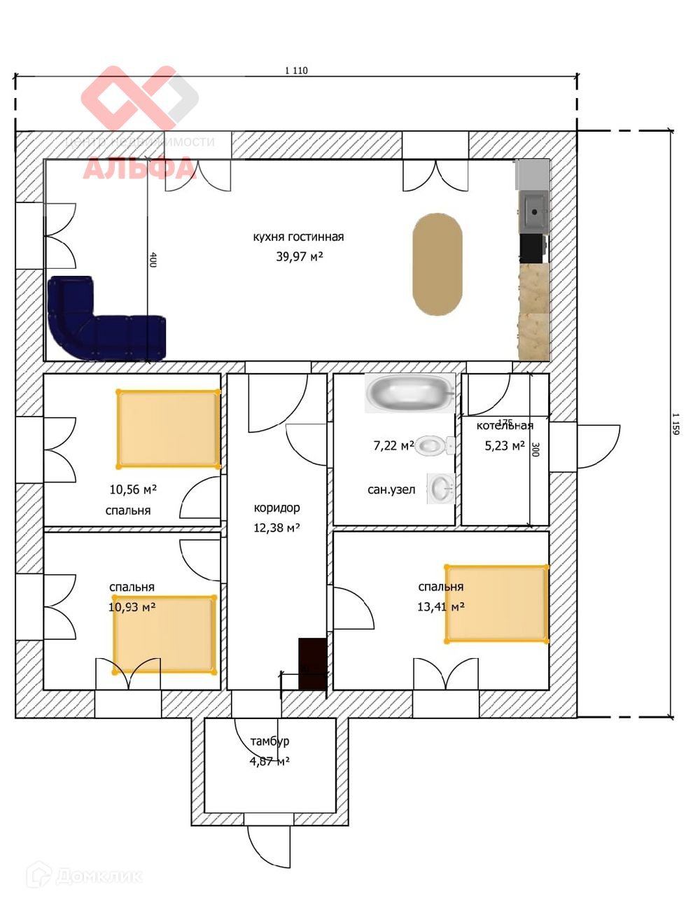 Общая площадь 105 м2