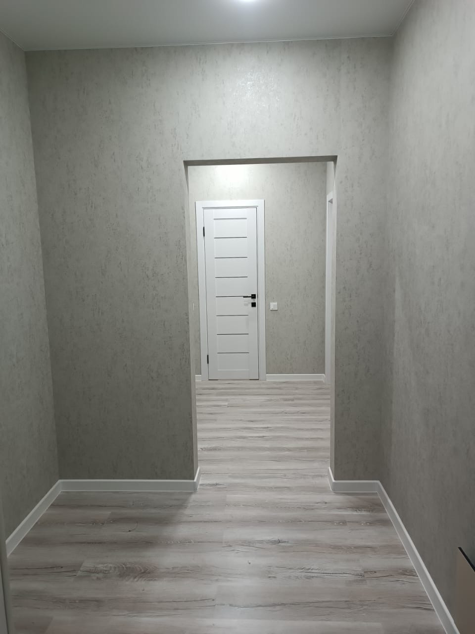 На полу ламинат, стены-обои. С/у плитка.