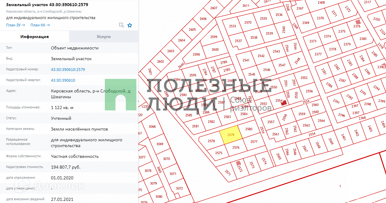Кадастровый номер 43:30:390610:2579.