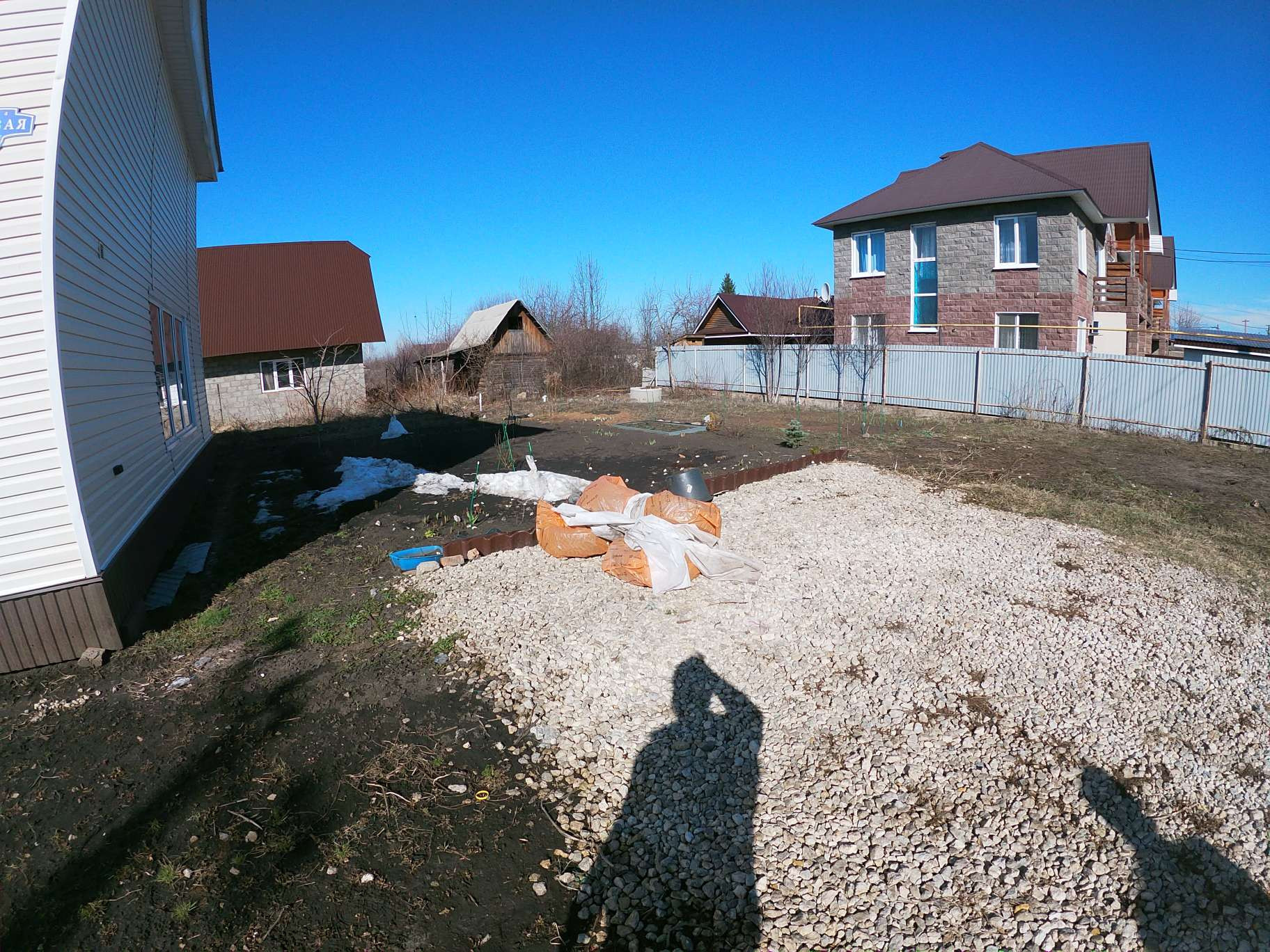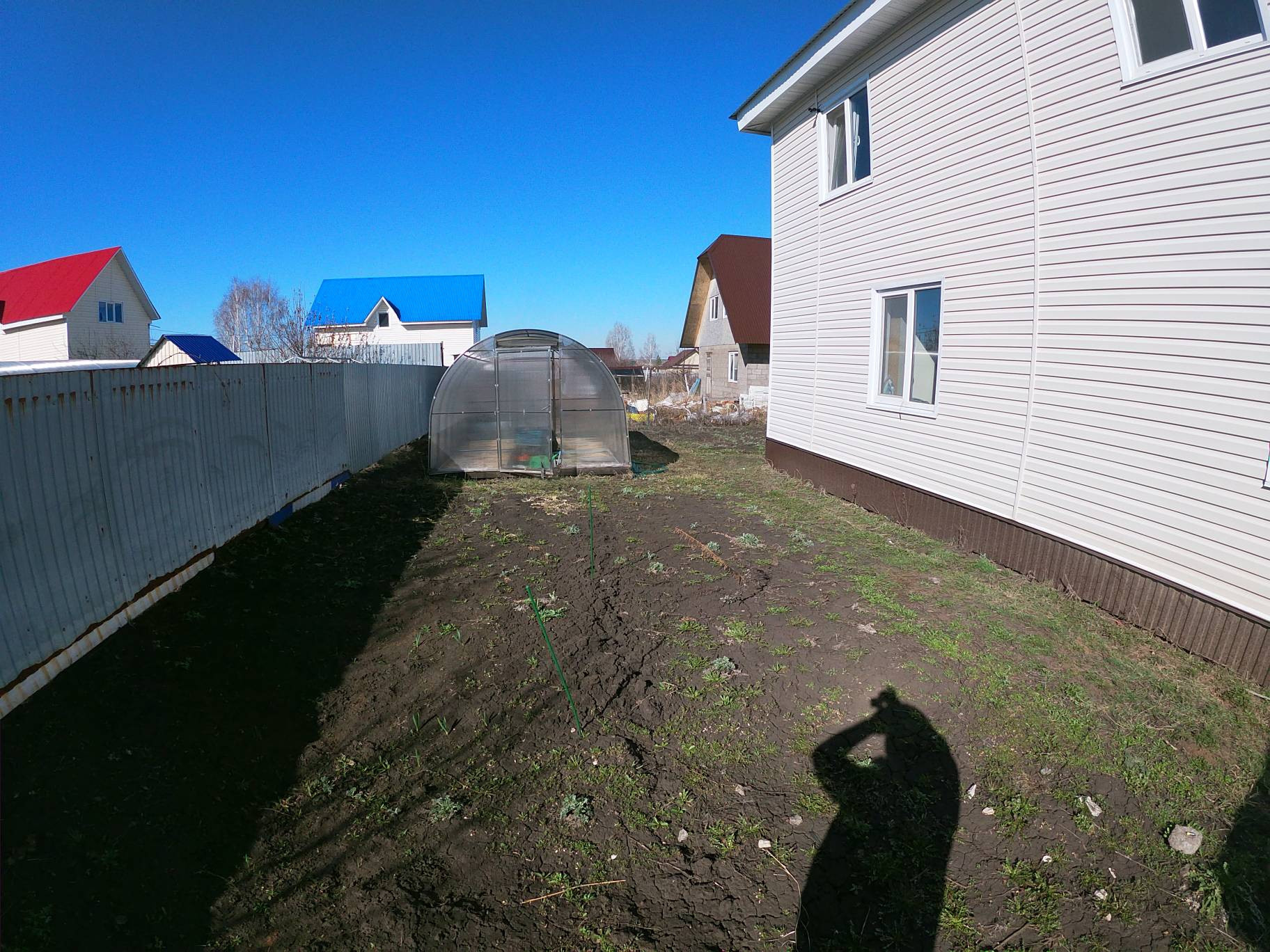Земельный участок огорожен забором из профнастила.