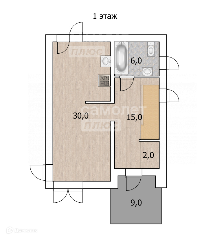 Площадь кухни 30 м2