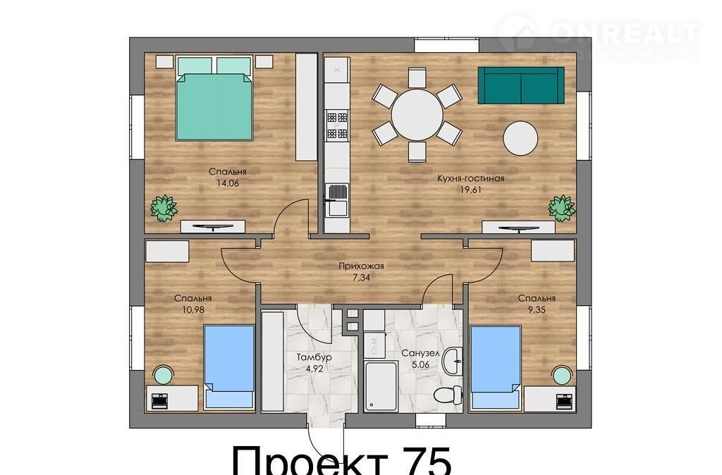 Общая площадь 75 м2