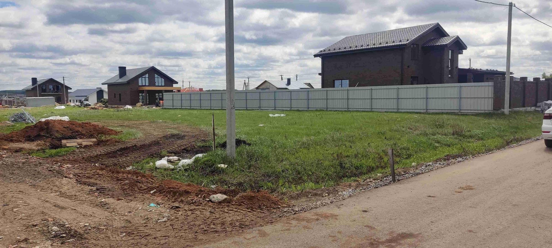 Сам участок в центральной части поселка, ул. Светлая 24. Соседи с двух сторон застроились. Поселок очень живописный и тихий, отличное место для строительства загородного дома, целевой взнос в УК оплачен.