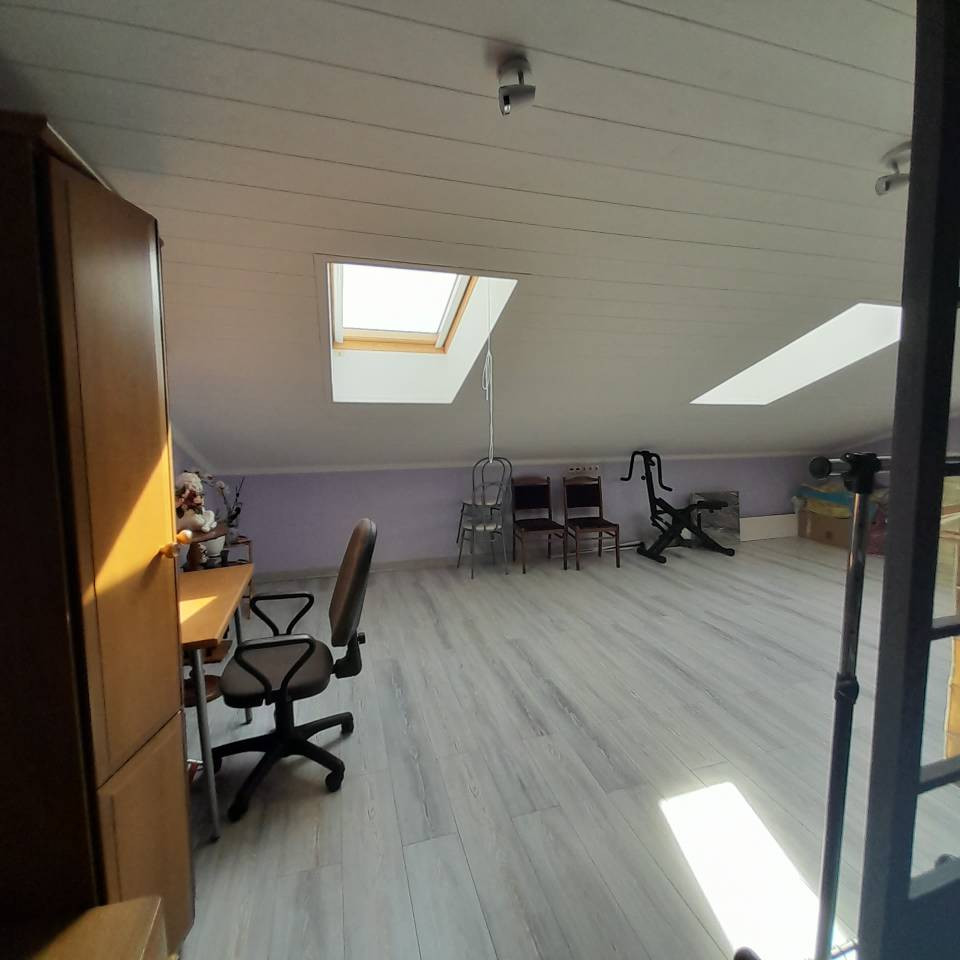 Дом продается с мебелью и техникой, мебельный гарнитур из массива дуба, 2 кровати (на 1 и 2 этажах), 2 кресла-кровати, 3 прикроватные тумбочки (на 1 и 2 этаже), встроенный стол с комьютерным креслом на 3 этаже, раскладной двуспальный диван.
