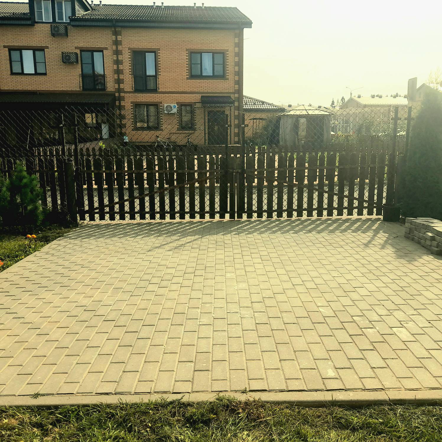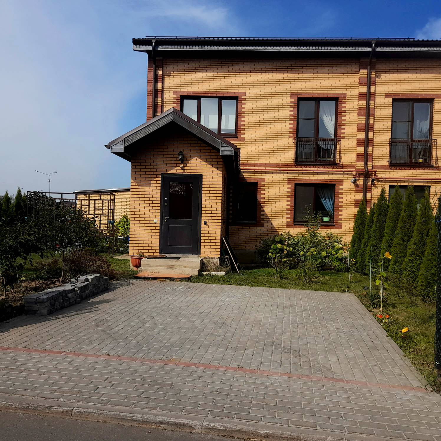 Мощеная площадка перед входом в дом увеличена -чтобы летом расположить тент и зону барбекю.