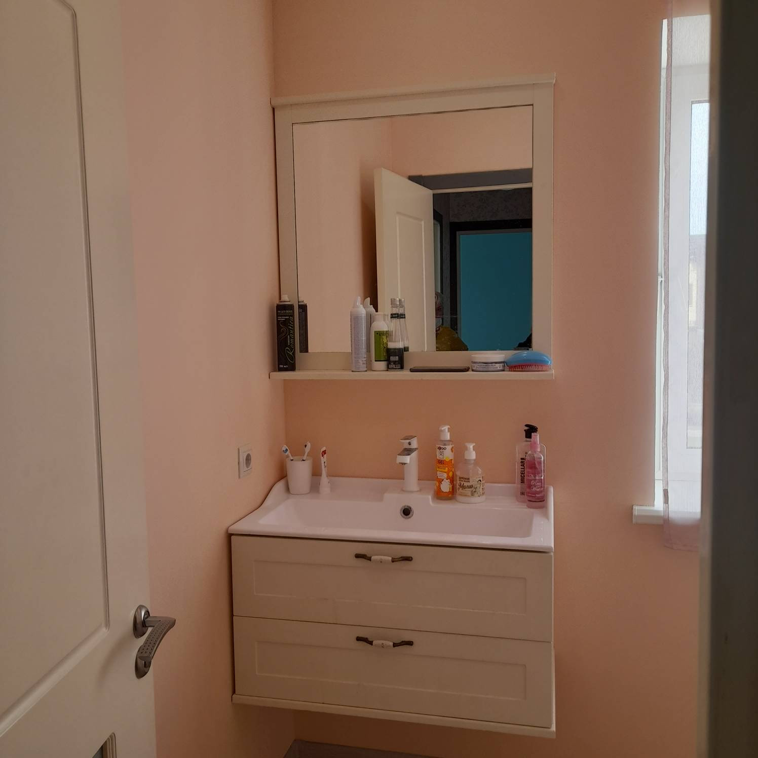 Второй этаж: две спальни, одна с гардеробной, постирочная с санузлом, установлена встроенная столешница для глажки со шкафом.