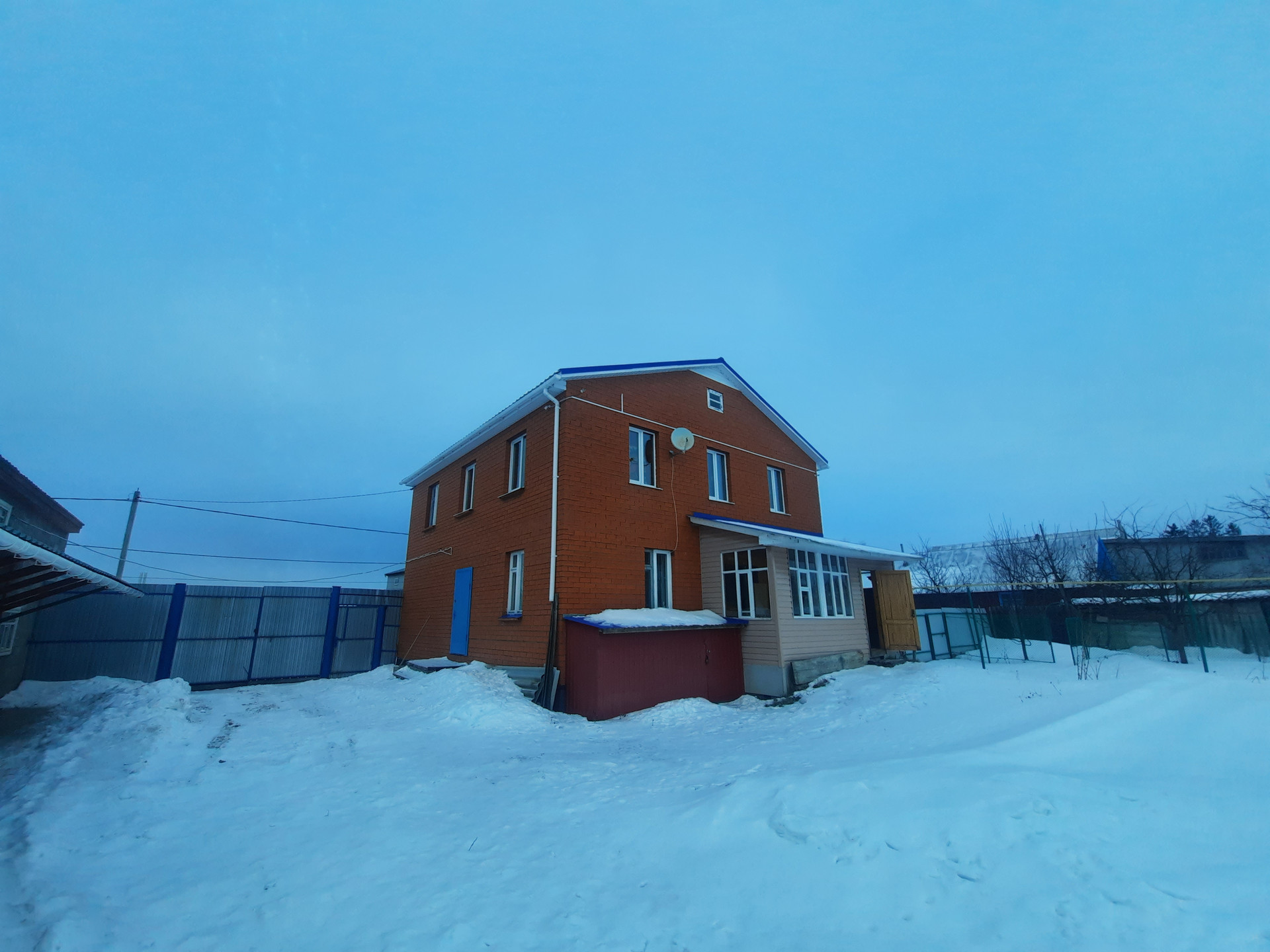 Крыша — кровельная сталь синего цвета.