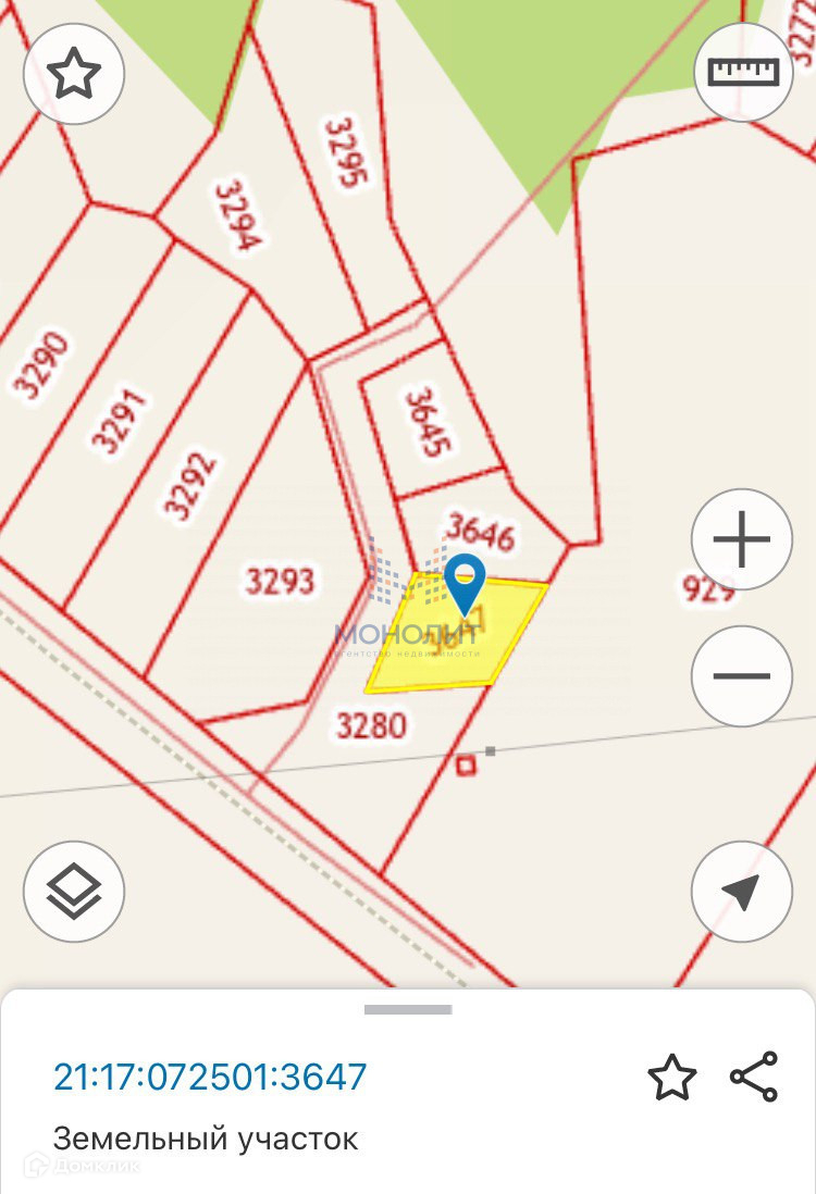 Арт. 70002411 20 мин от Чебоксар, УЧAСТОК 6 cот ИЖC, ширинoй 26м. 21:17:072501:3647