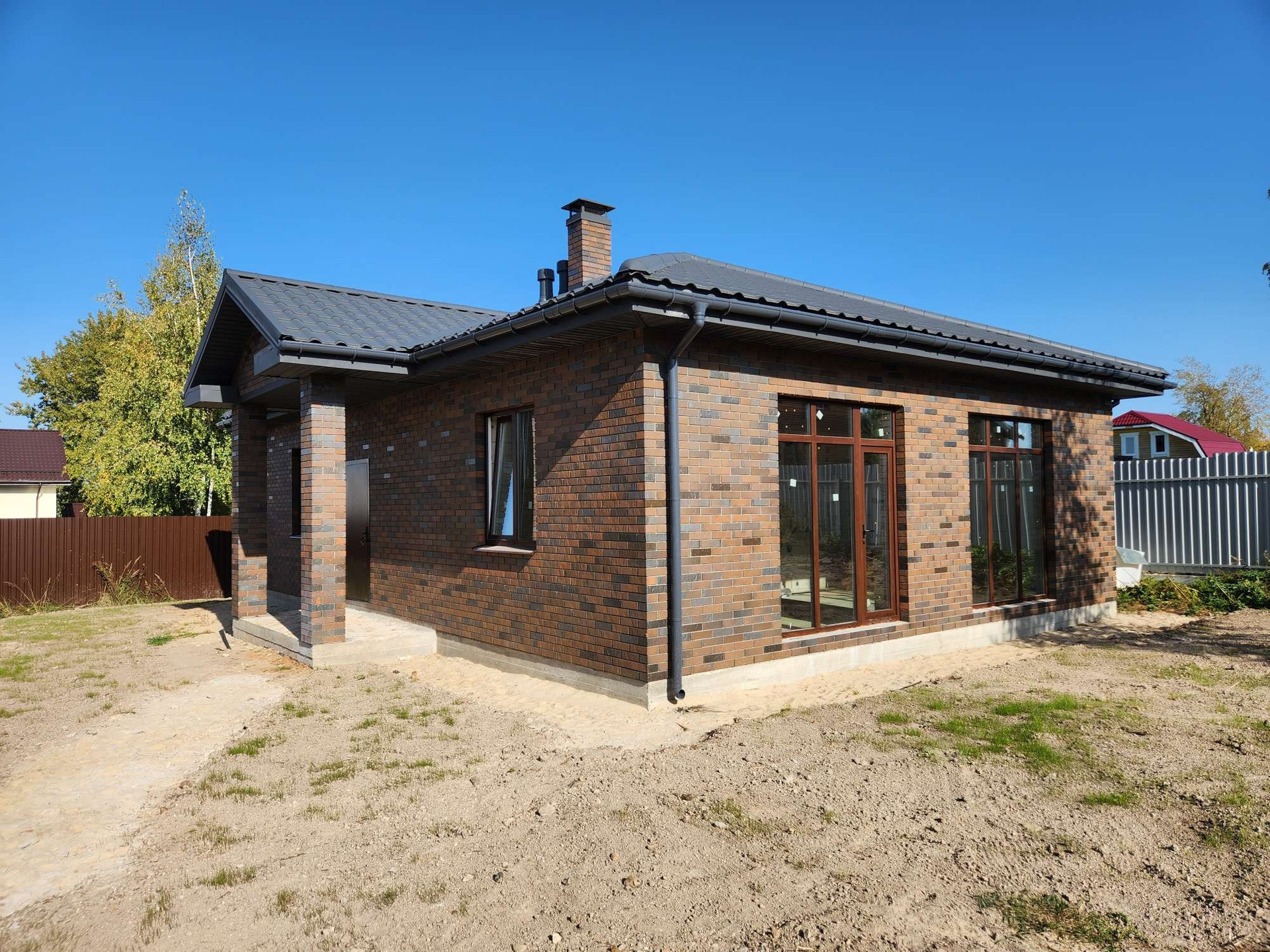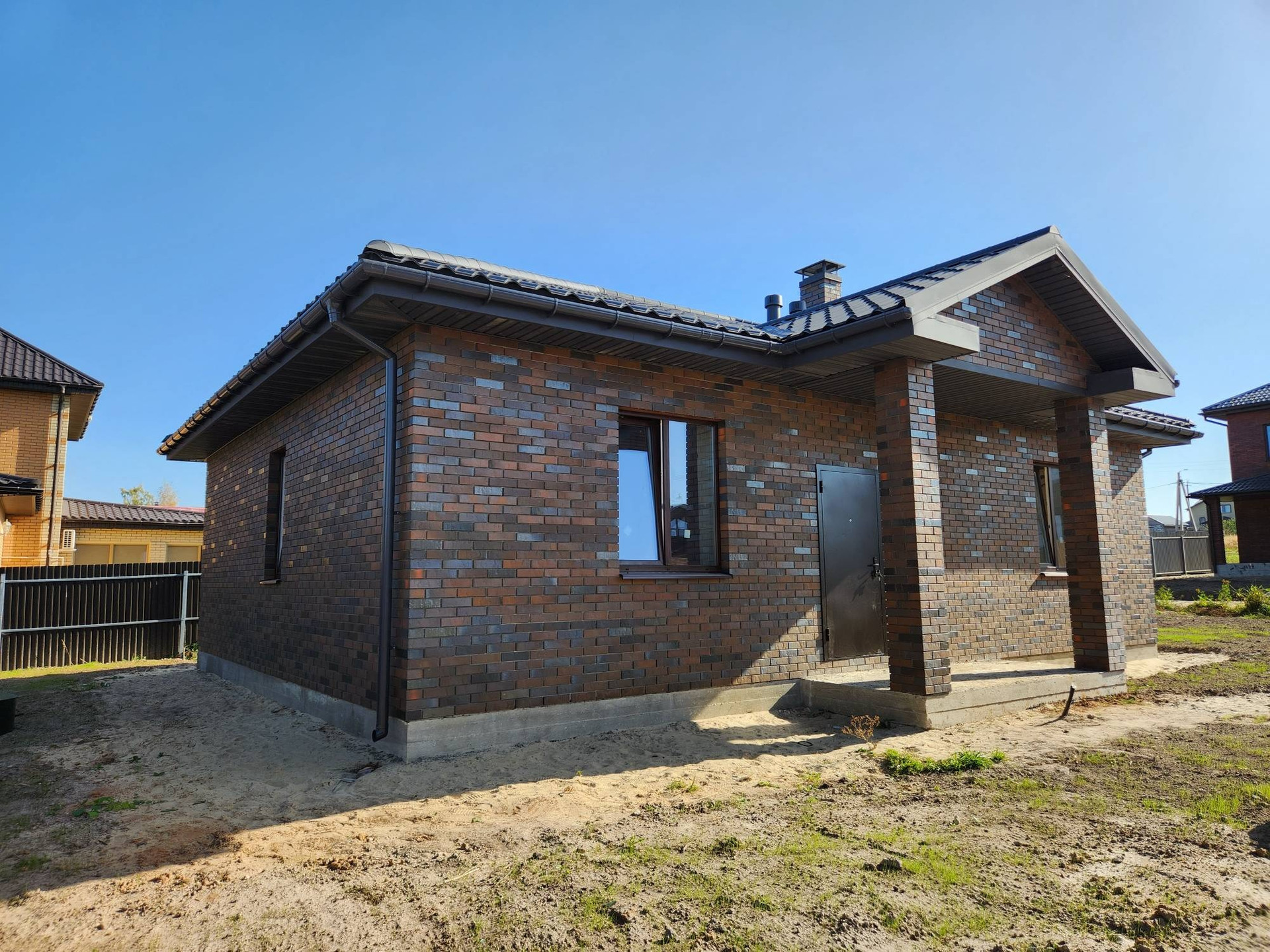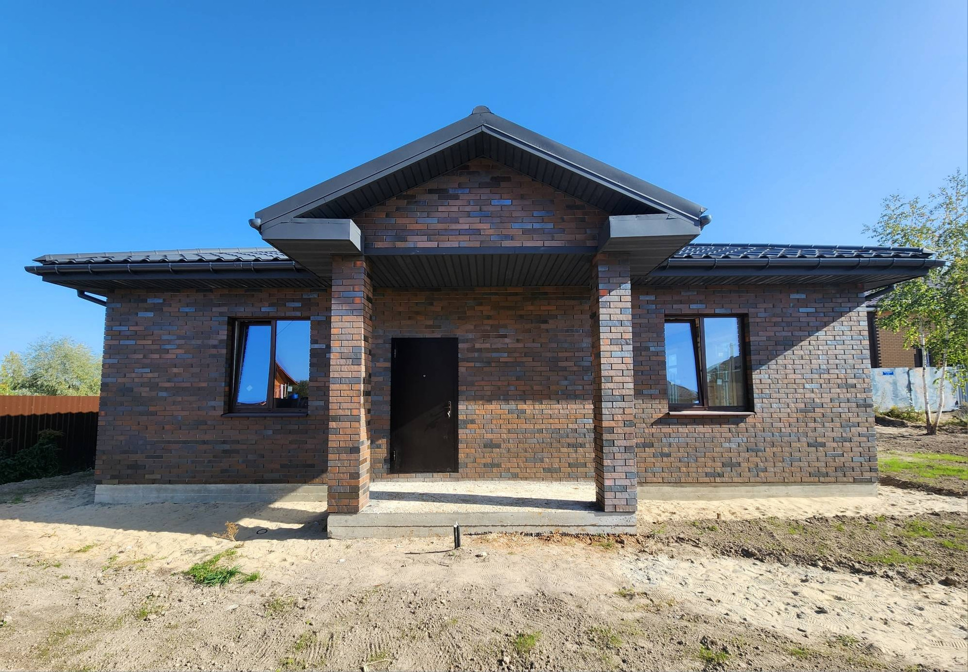 Стены из 375мм газоблока, кирпич браер, фундамент - монолитная плита, крыша- металлочерепица